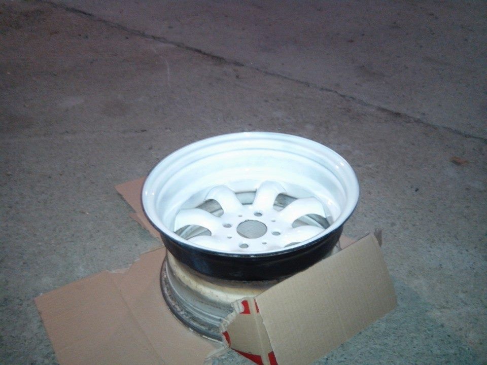 Джантите бяха отрязани балансирани и заварени двойно и отвътре и отвън след това заварките бяха взети на струг и по закона на Мърфи едната не я бяхме центровали при заварката до мм., та рязахме на ново, но в крайна сметка резултата е на лице, изшкурих ги и успях даже да им налея основа.Утре ще се монтират гумите и вече ще е завършено всичко