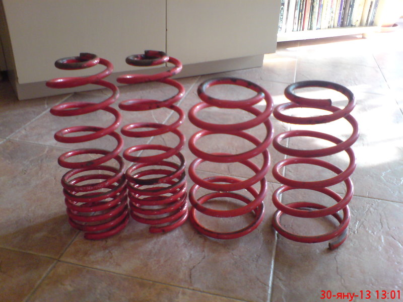 Има малко раздвижване - Днес взех едни пружини от колега от форума . Да се надяваме ,че ще застане добре с тях колата .60/40 трябва да са пружините:)Джантите още са в процес на обработка - щом са готови и ги сложа на колата ще я наснимам да я видите :)
