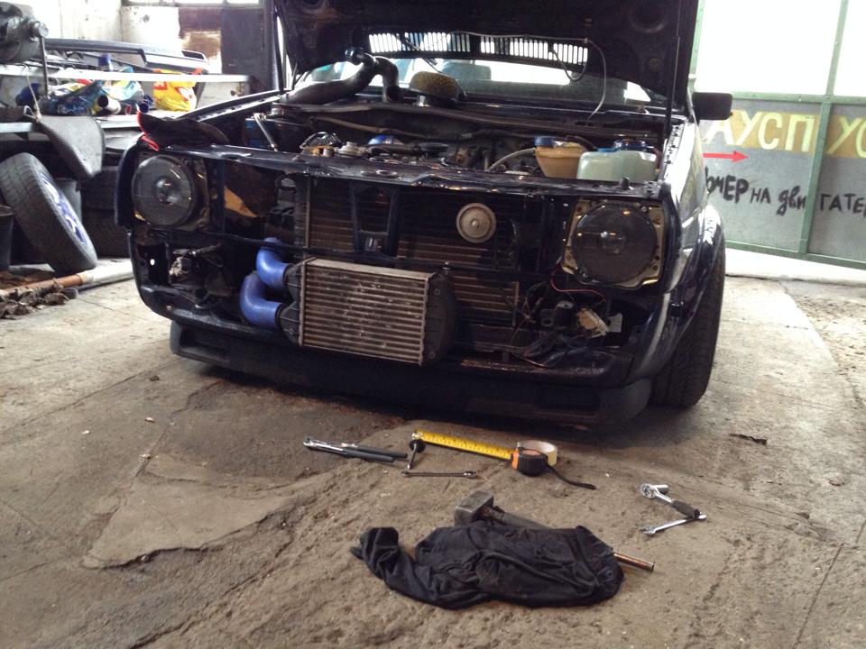 Малко да раздвижа темата...по колата се случват разни неща хаха.....инсталиран е окастрен бууст пин...налягането на турбото вече е на 1.2 бара. И едно детско кулерче да експериментирам на фона на счупената ми броня.