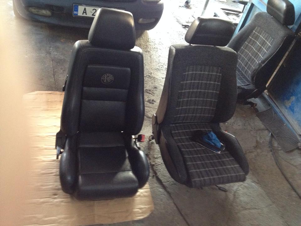Поставих седалки от алфа...задната седалка е дадена на тапицер,както и волана,и маншона на скоростния лост като идеята ми е да станат с черна кожа със сини конци.Търся си кожени кори за вратите...в краен случай ще тапицирам моите кори.