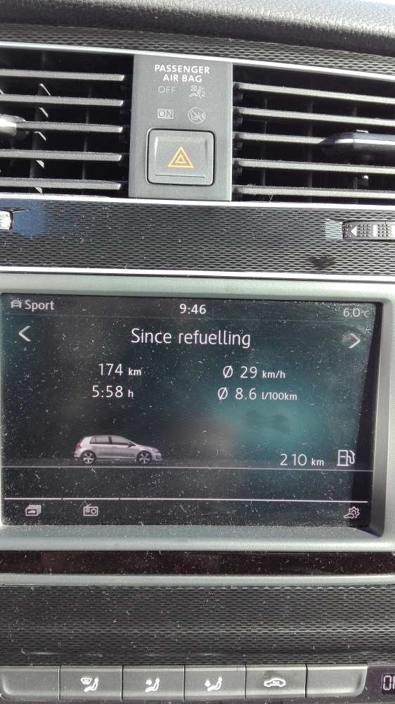 Ще излъжа за средната скорост, утре ще хвърля едно око и ще я допълня. Обичайния ми маршрут е Младост4 - летище София и обратно. В посока летището е спускане и няма никой, разход малко над 7л. В посока Младост ситуацията е диаметрално противоположна: доста тапи, изкачване. Разхода тогава става близо 11л. В 3тата генерация на EA888 има много добри решения за heat management. Мотора загравя нереално бързо. Start-stop системата също видимо пести гориво в доста ситуации.