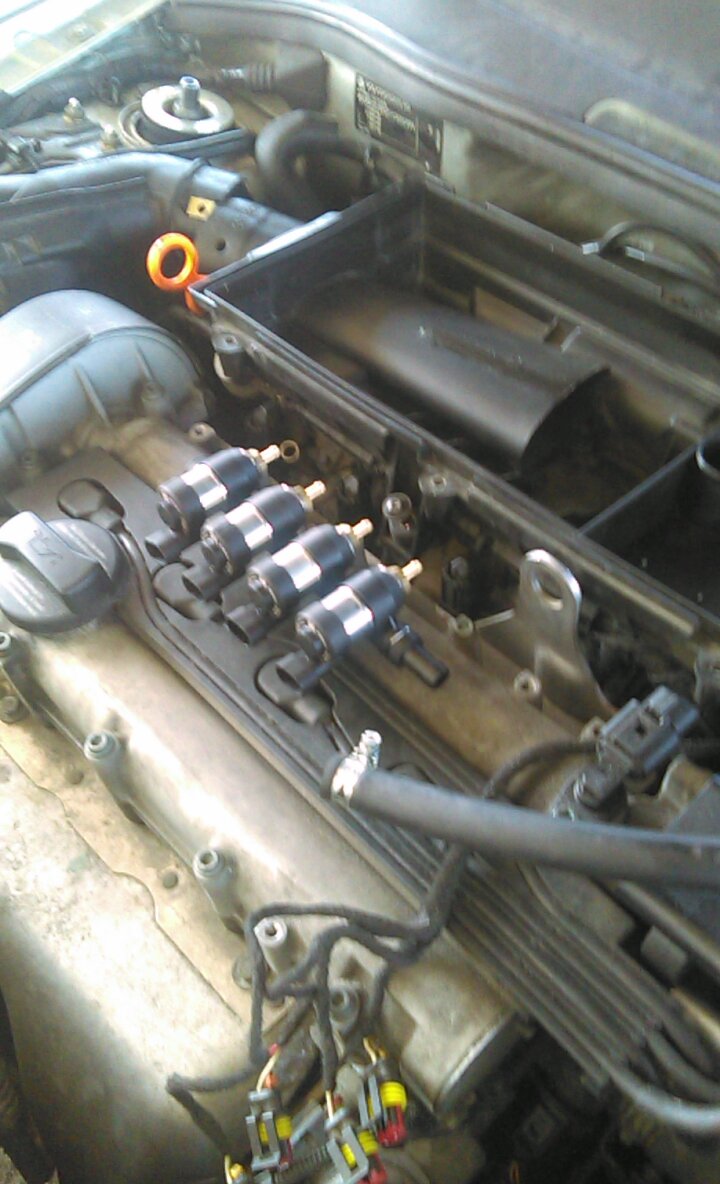 Малко да попиша по темата, оказа се, че проблема с дюзите и загубата на мощност във високи не е изцяло по вина на самите дюзи. От няколко дни колата почна да прави проблеми. На смукач всичко е 6 държи си 1200 оборота равномерно и в момента, в който колата излезе от смукач почва да мени оборотите от 940 да ги кажем ориентировъчно падат с по 150 и се качват пак до 940, на загрял мотор проблема намалява почти до минимум като на моменти държи стабилни обороти на моменти ги мени през 80 и прави леки детонации в гърнето, като понякога колата до 2000 оборота леко заглъхва над 2000 избистря друг път когато оборотите са горе долу стабилни на място като я натиснеш и скача и се реже без проблем(колата на студено и топло пали от 1/16 стартер няма проблеми и след като я запалиш 5 секунди по късно почва играе леко и така). Та реших аз да търся какво може да е при което разбира се нали тука ме наведе на мисълта за основно 3 неща, бобина с комутатор, датчик температура на антифриза(редовния проблем) и датчик разпределителен вал, който управлява инжекторите и тайминга. В момента, в който откачих буксата на датчика на разпределителния вал и какво да видя пълно с масло вътре, редовния проблем на тия полота, заради това, че Гюнтер не си е пил кафето сутрин и решил да прави датичка целия от пластмаса, разбира се може да се предположи че от топло студено пластмасата в даден момент се предава и датчика се пропукал острани на корпуса много леко,но достатъчно да качва масло. Сега ще сменя датчика, поръчал съм и бобина с комутатор, ще сменя и датчика на охладителната течност да знам, че всичко по смесообразуването и запалването е ново и ще пиша допълнително за резултата