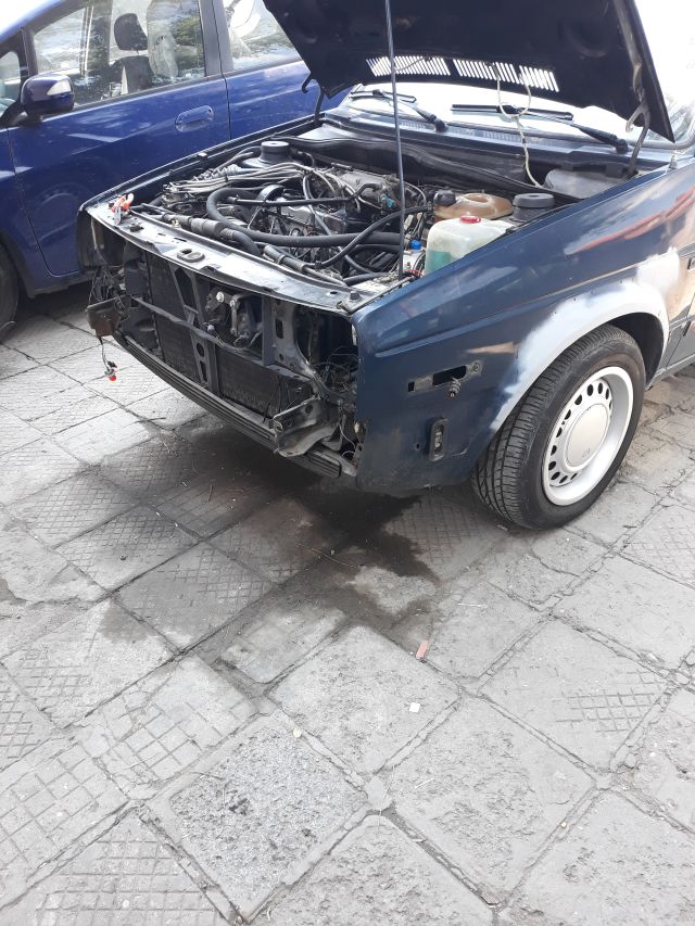 Здравейте има леко развитие по колата лека полека се подготвя за боя но първо трябва да мине през тенекиджия да изпарви удара от предния пост и задна лява вежда та я разглобих свалих брони фарове стопове уплатненията около вратите мокети седалки кори остана само уплатненията на тавана ето и няколко снимки