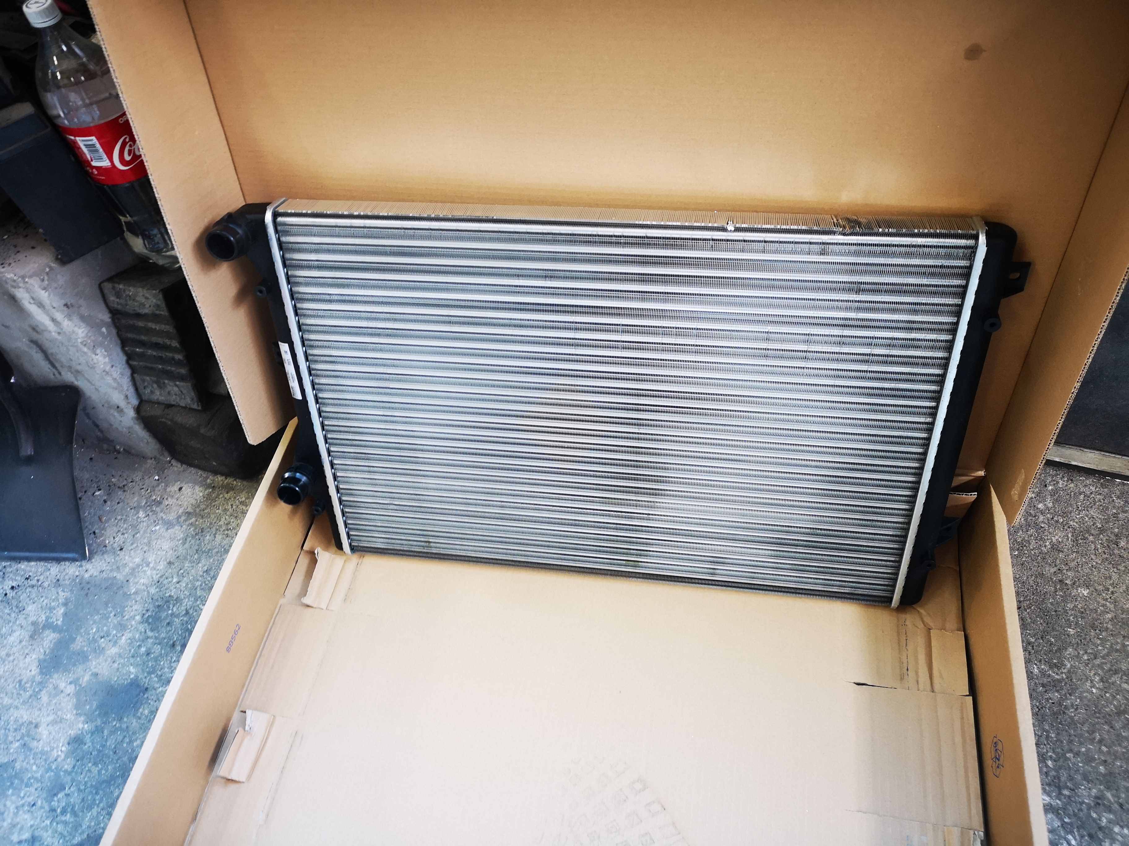 На стария радиатор така и не направих снимка, беше един сякаш по-голям и огънат отдолу, просто не поисках да го гледам даже, и явно онзи ден като минах през огромната дупка на пътя и съм му разказал играта.