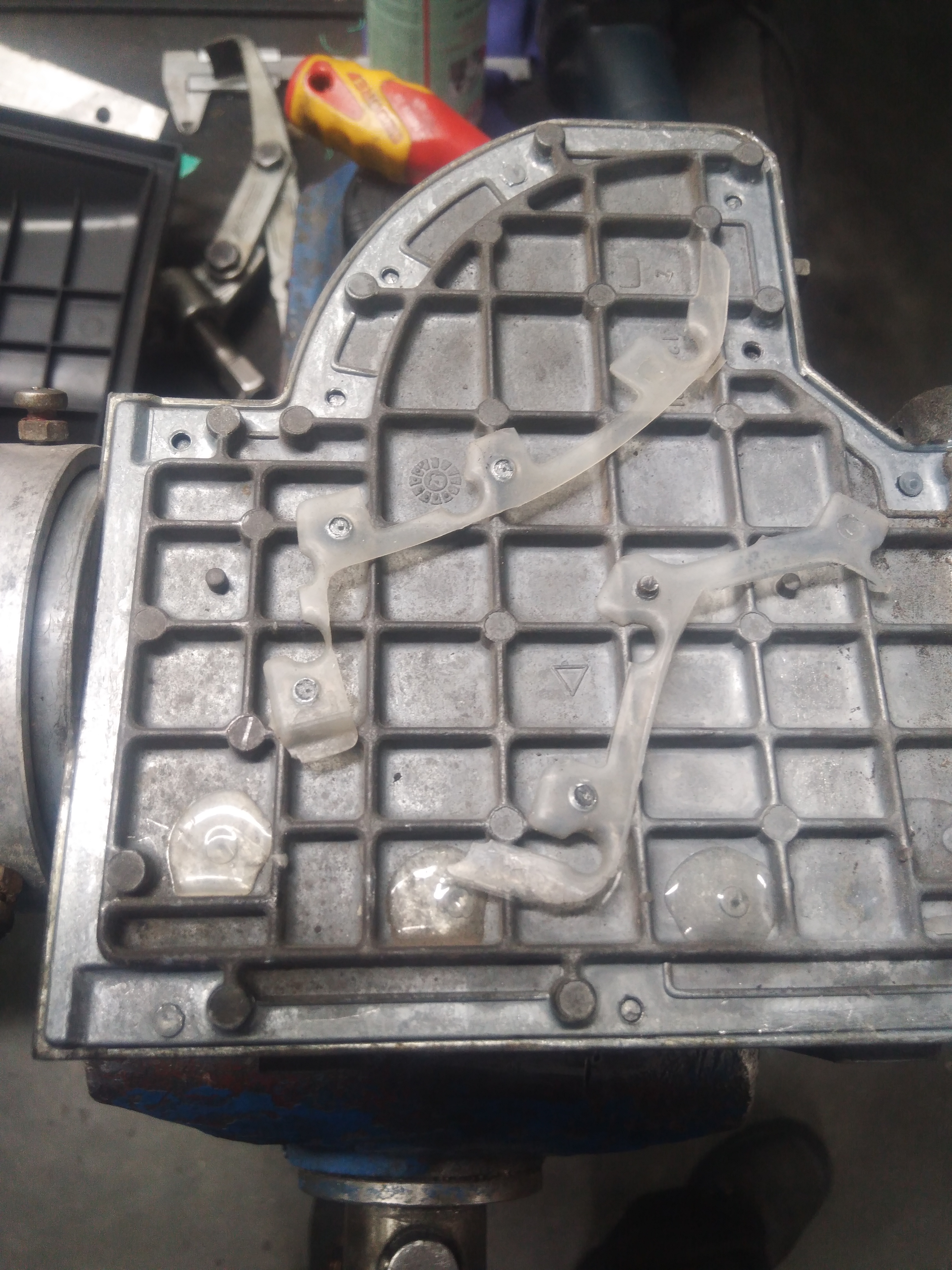 макар, че се бях сдобил с 2 дебитомера аз си отремонтирах моят. Нитовете бяха скъсани разпробих със свредло ф 3,5 и изрязах резба м4, болтове м4х8 силикон и работата заспа.