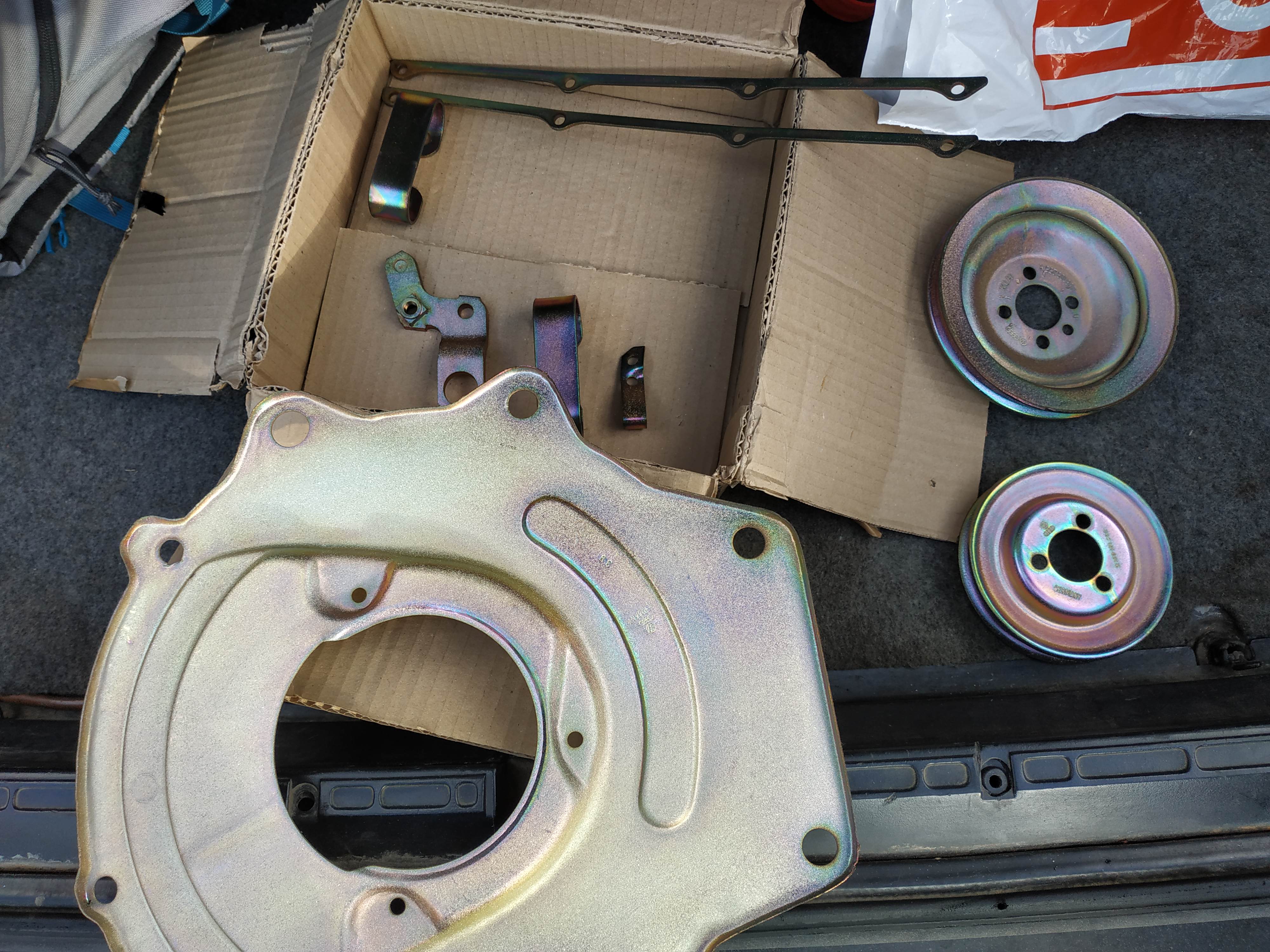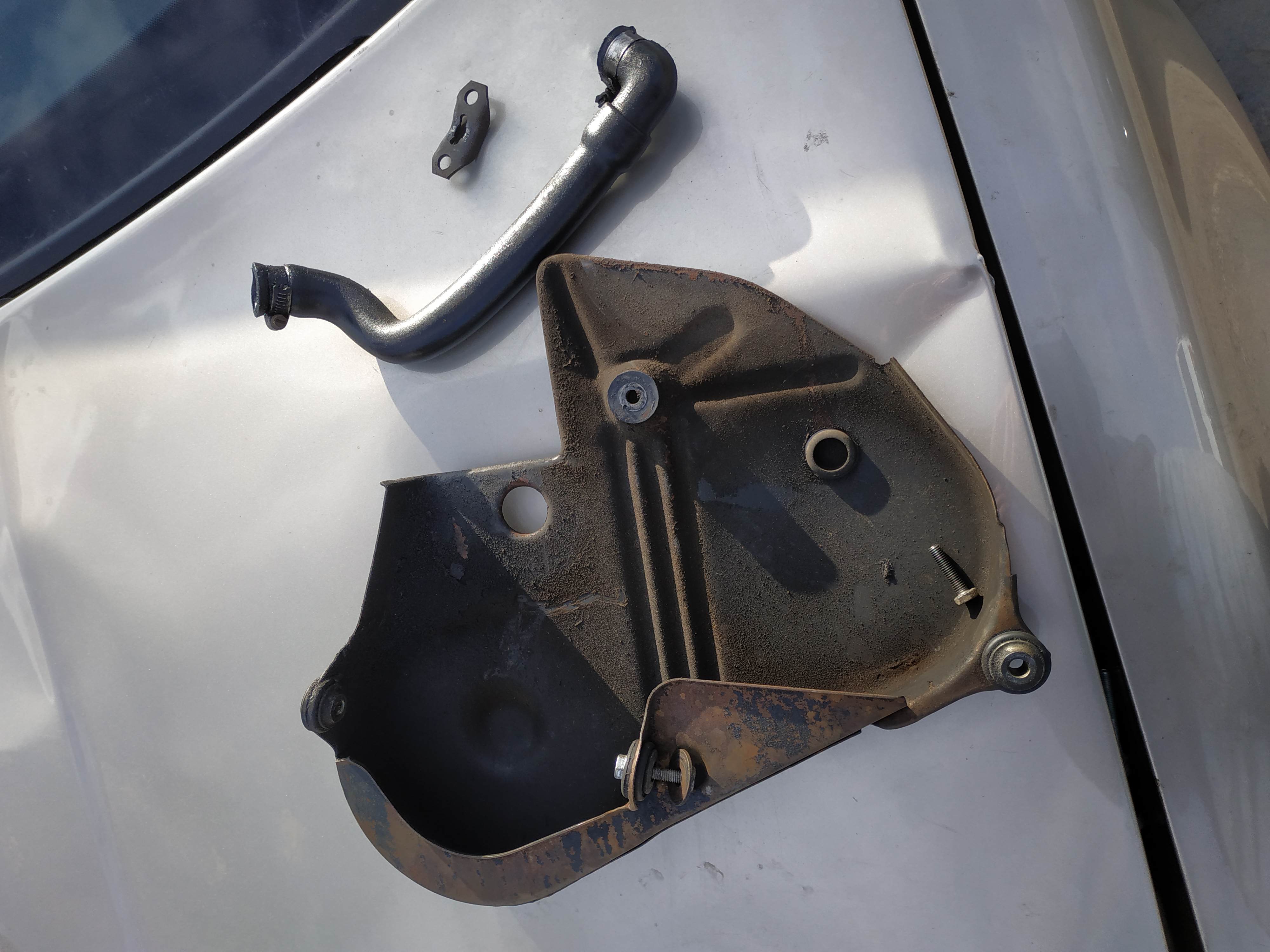 Надин днес спаси положението , нищо че е минус 6 пасата донор ни даде, е планката , която държи жилата на ръчната, металния капак на ангренажа, маркуча от капака на клапаните към кутията на филтъра, маркуча от горивния филтър към ГНП-то, ключалка за жабката, както и разни винтове и гайки , които липсваха.