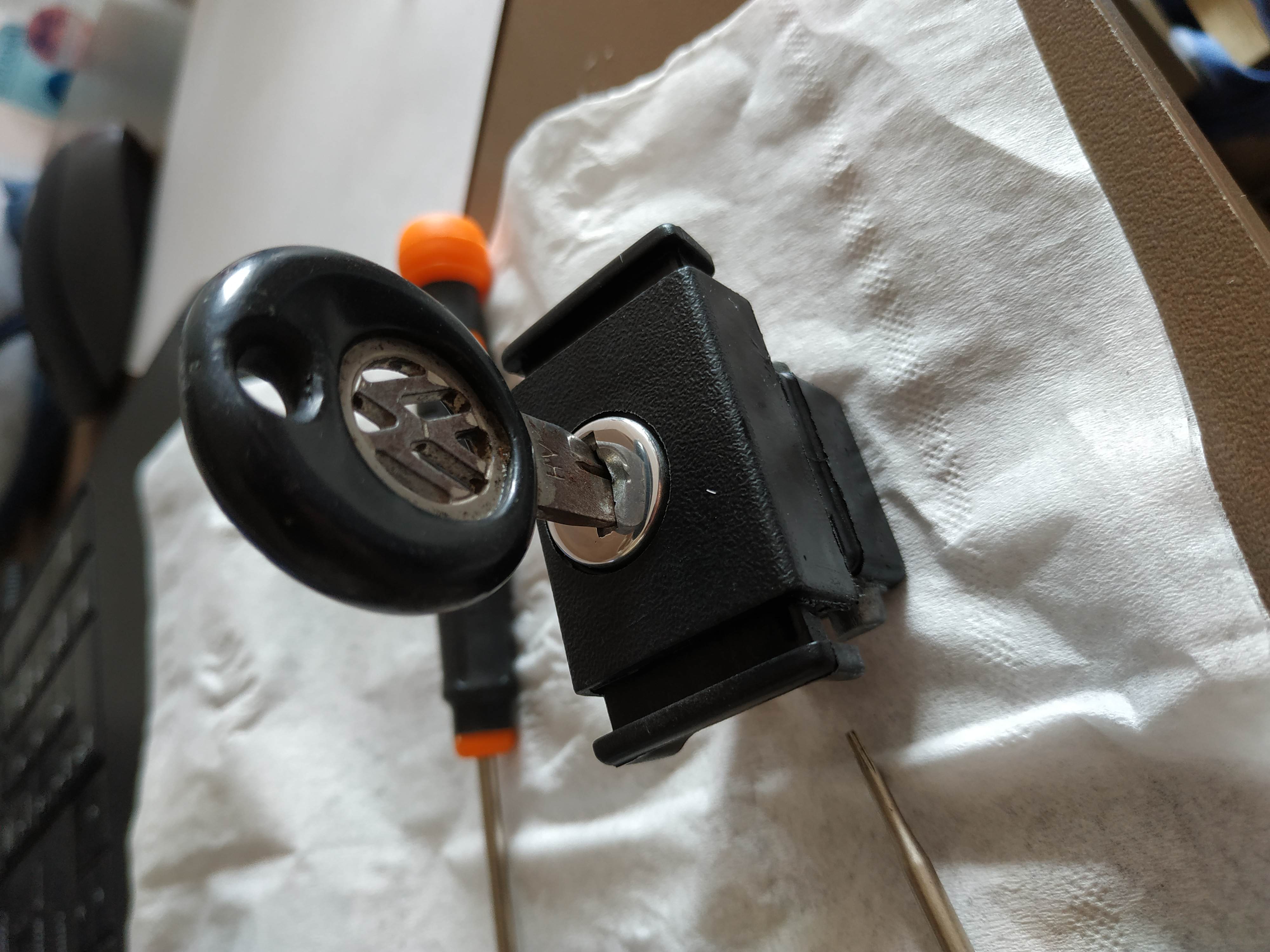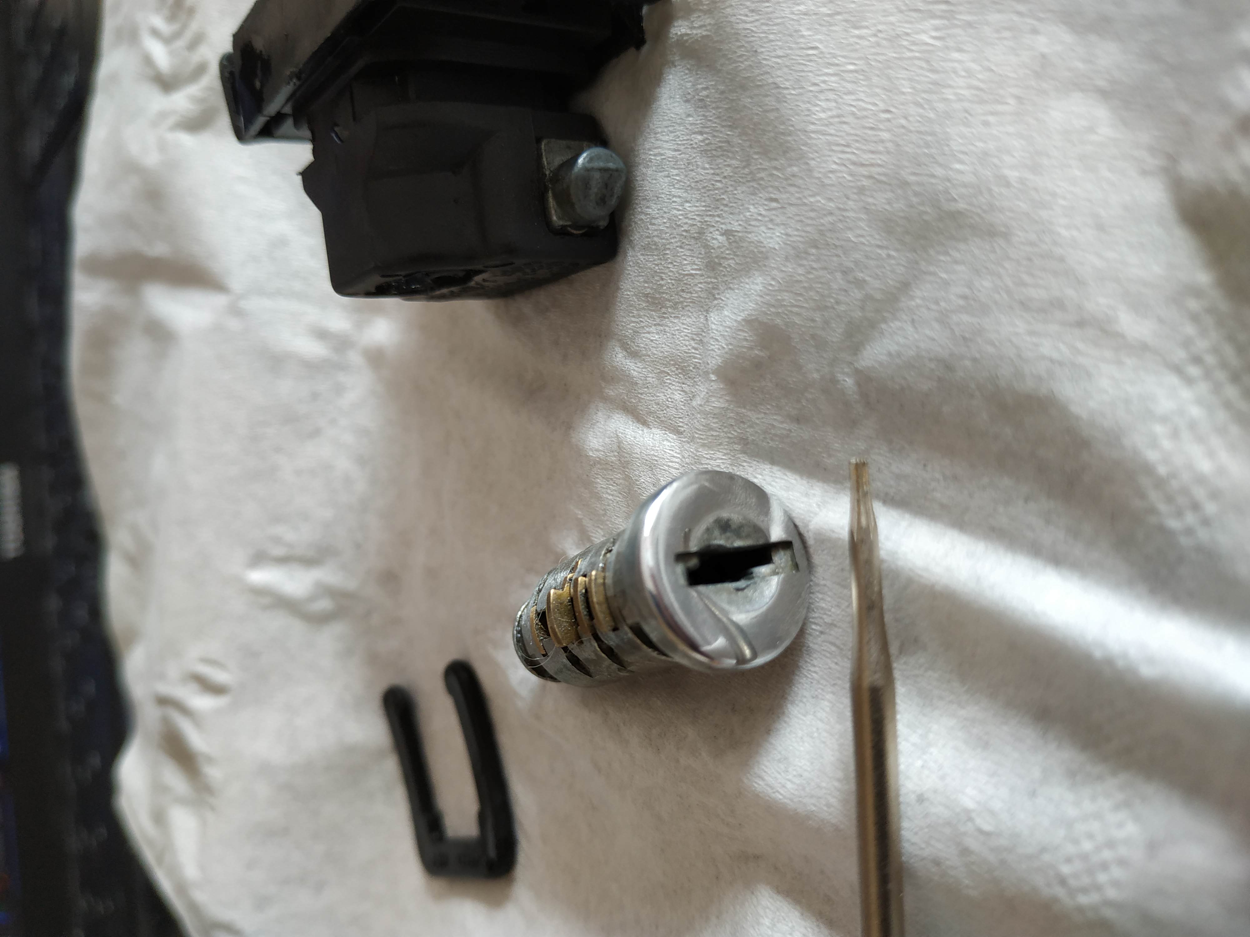 Почистена ключалка за жабката, наредена по ключа, махнахме 30 годишни нечистотии от ключа, полирано патронче