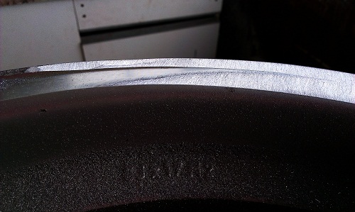 И тъкмо се чудех при кой стругар да ги нося и реших с гумената шайба и шкурка номер 60 да пробвам само какво ще стане.А то взе че се получи идеално.Със шайбата се работи много лесно.След като изравних унищожения ръб,направо се сля със борда и се получи идеално право.Като му хванах цаката и докато се усетя,две от джантите бяха готови,утре може да тръкна и другите.