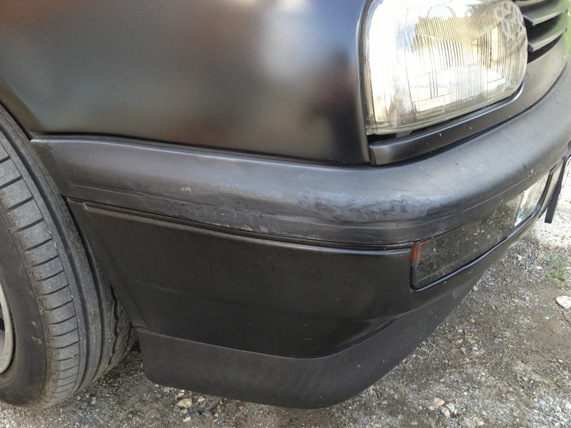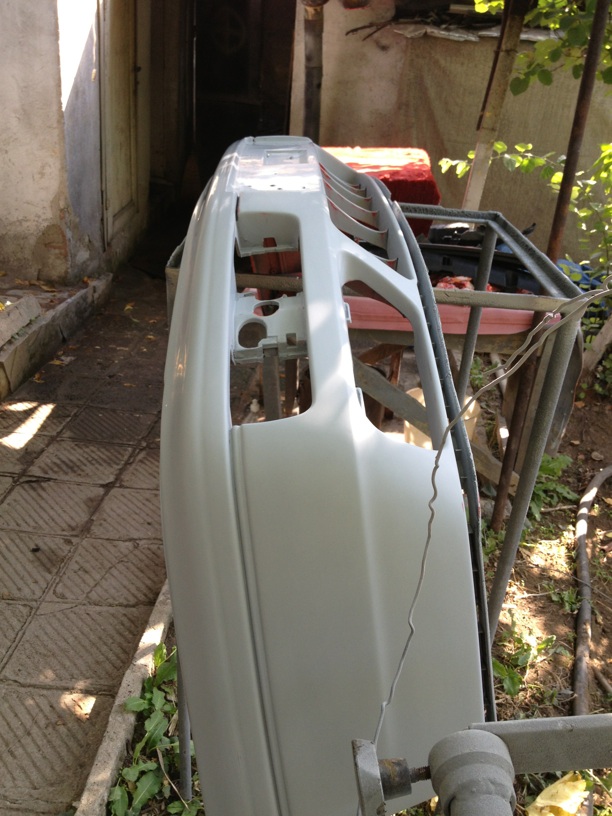 Колеги, дори на мен ми е трудно да повярвам, но след около час голфарата ще си има монтирана броня, която ще е като нова благодарение на Радо Великолепний от Стара Загора и Спийди от форума, който ми я даде. Интересното при тази броня е, че оригинално е от вида "полугрунд", т.е. не се боядисва онази част, която е под фаровете, защото е като някаква евтина имитация на кожа. Само че някой си е поиграл доста да я заглади точно там и я е превърнал в цял грунд. Винаги съм искал предната броня да е от този вид и в крайна сметка ще е така.