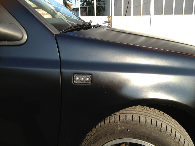 Колеги, съжалявам за забавянето при качването на снимките на новата броня, но ми се отвори доста работа. Както и да е. Ето я на, мисля си, че изглежда направо страхотно.Има и снимка на новите мигачи. За сега толкова. Предстои работа по интериора на колата - черни пластмаси вместо посраните бели пластмаси, черен таван вместо сегашния. По принцип в центъра на тавана трябва да има избродиран един знак, но тапицерите ми нещо не им се рискува. Ще се търсят други тапицери ...