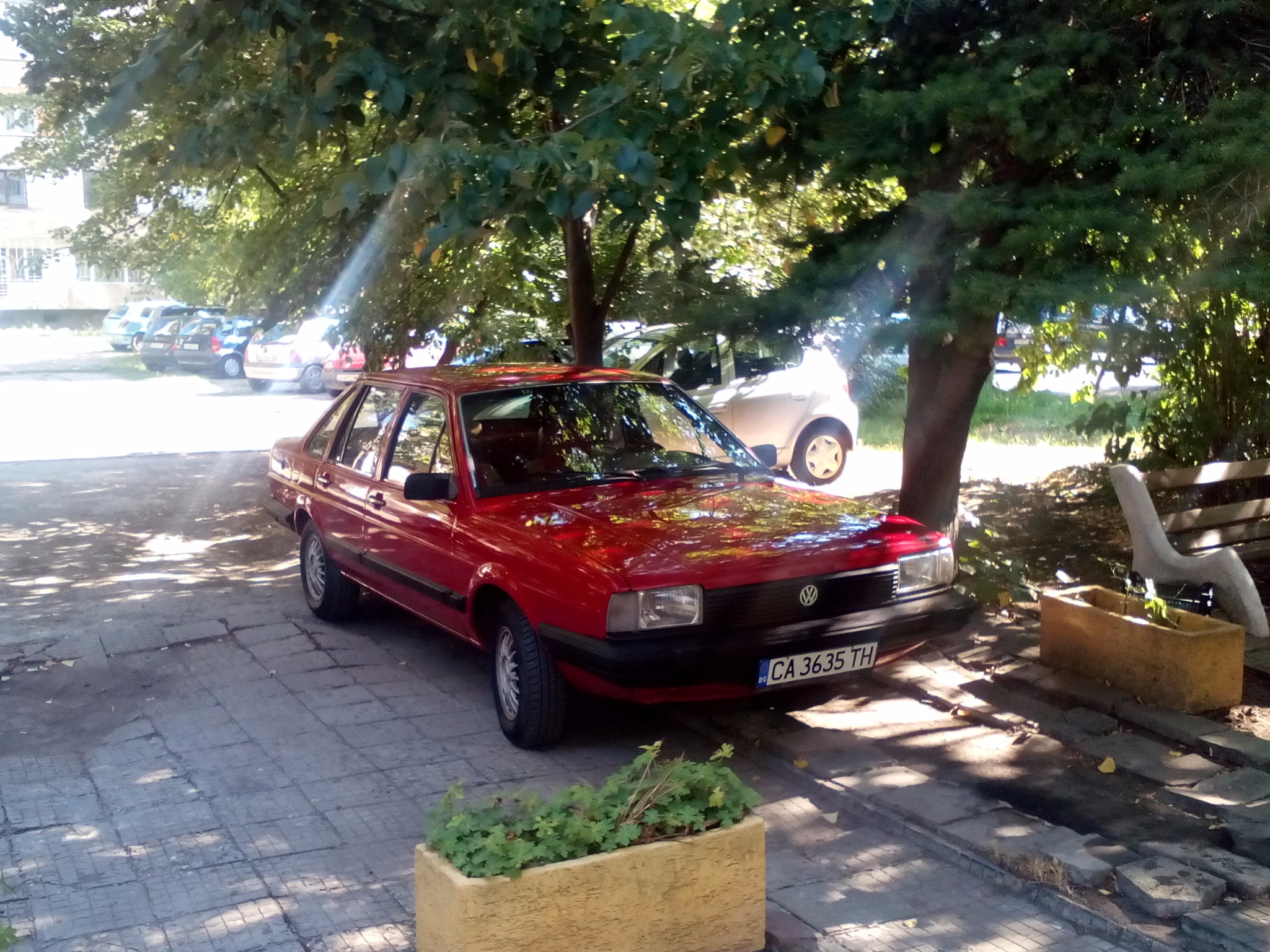 Супер е колата и цвета е добър ! Много рядко се срещат вече Сантана на пътя . Колега , като боядисва колата , защо не премести зареждачката на газта от задния калник ?