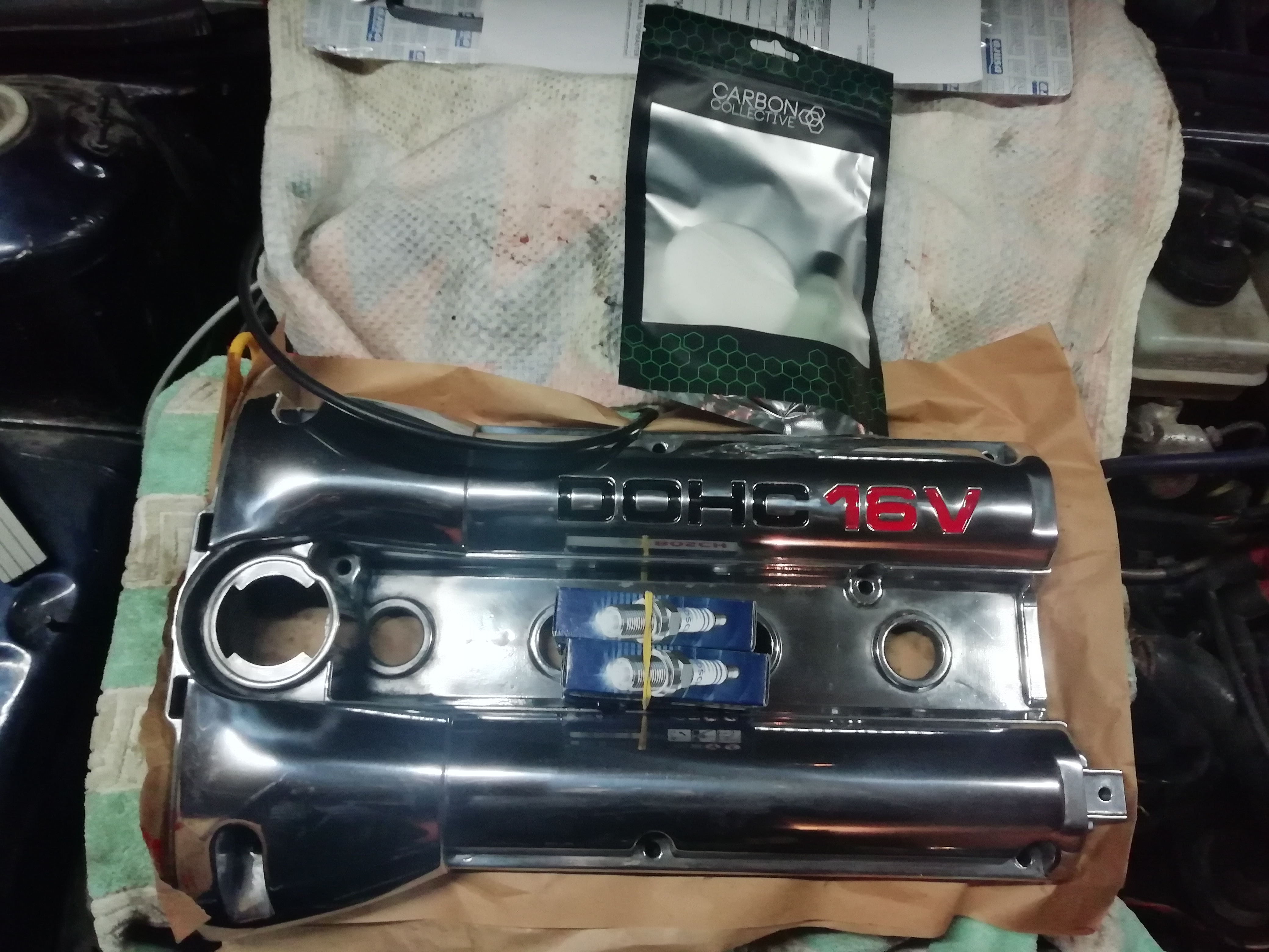 Този уикенд имам бая задачки и няма да мога да довърша капака , като обезмасляване и защита с керамиката, махане на останалите парчета от ОЕМ гарнитурата около свещите и монтажа на новата.