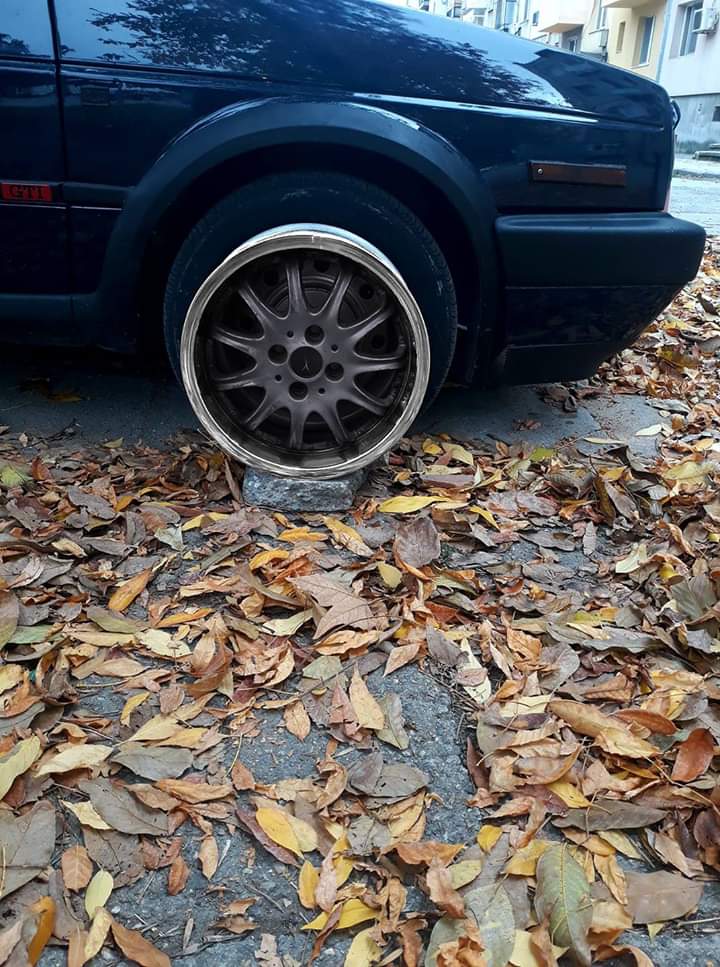 Така онзи ден бащата ходи със джетата на работа и е ударил дупка и е специл гумата но от тогава насам се появи отново едно гадно дрънчене от накладите сменях пластинките и пак продължава да дрънка някой да има някаква идея от какво може да е