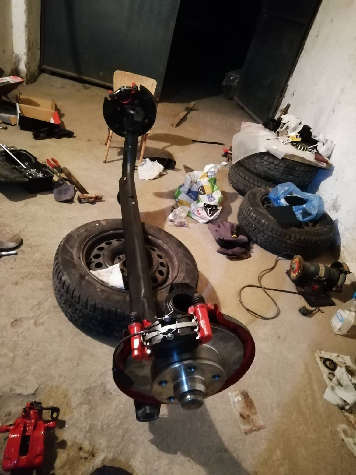 Работихме до късно и беше доста трудно, но с тате се справихме и приготвихме всичко на 90%. Другите 10% са инсталацията, паленето на колата и да се настройва.Задния мост е на 100% реставриран Както и спирачките с ремонтен комплект И нови спирачни тръбички