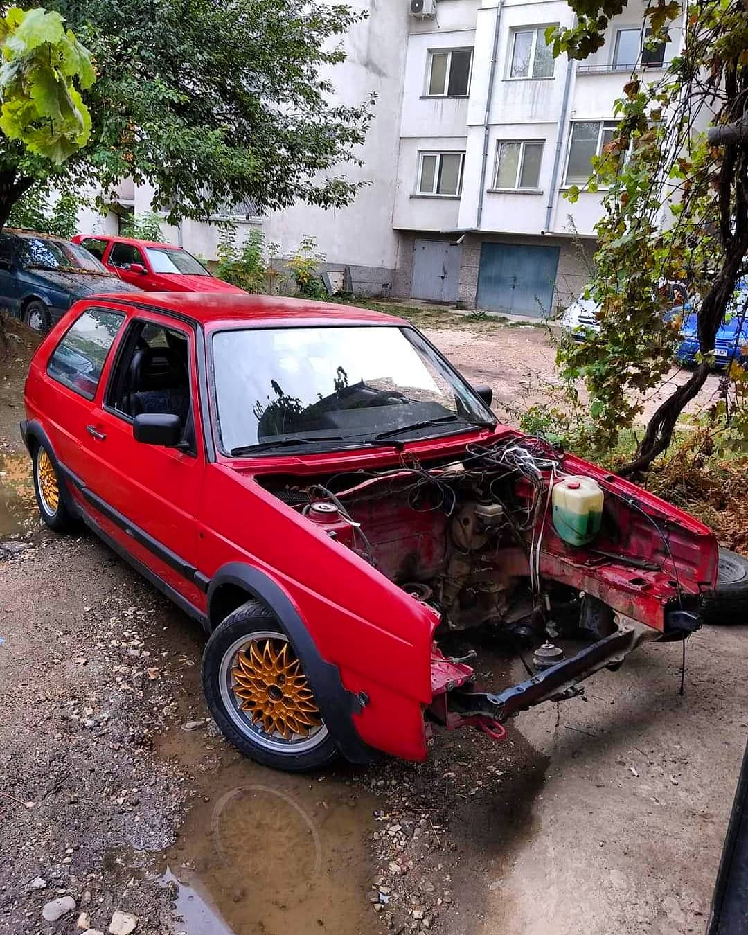 Почвам малко с темата, че има бая писане. Да запачнем с това, че от колата остана голо купе. Първо го измихме, защото имаше поне 30 килограма кал от годините, а после запечатахме всички ръждиви цънки. Наредихме шумои золатор на всички възможни места и почнахме инсталацията. Оригинално колата е 87-ма със CE1 и колега ме оборудва с ce2 от голф гти 91-ва. Дойде ред на двигател и ходова част. След като сме разглобили абсолютно всичко и сме го обслужили се монтира на колата. Имаше доста неща за преправяне и ще покажа със снимки всичко. Ползвам моторна инсталация от абф и бензинова помпа на резервоара. Цялата ходова част от голф 3. Голф 3 километраж и MFA лостчета. Всички тампони и Маншони са полиоретан. Спирачкните апарати ги ревизираха с ремонтен комплект. Премахнах кантара на задния мост (не знам дали беше добра идея, но доста коли нямат) Занимавах се цяла седмица с инсталацията да и сложа нов изолатор и да сменям гадни кабели