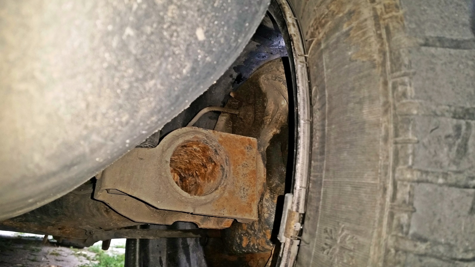 Залегнах под колата и видях причината - задно дясно колело: