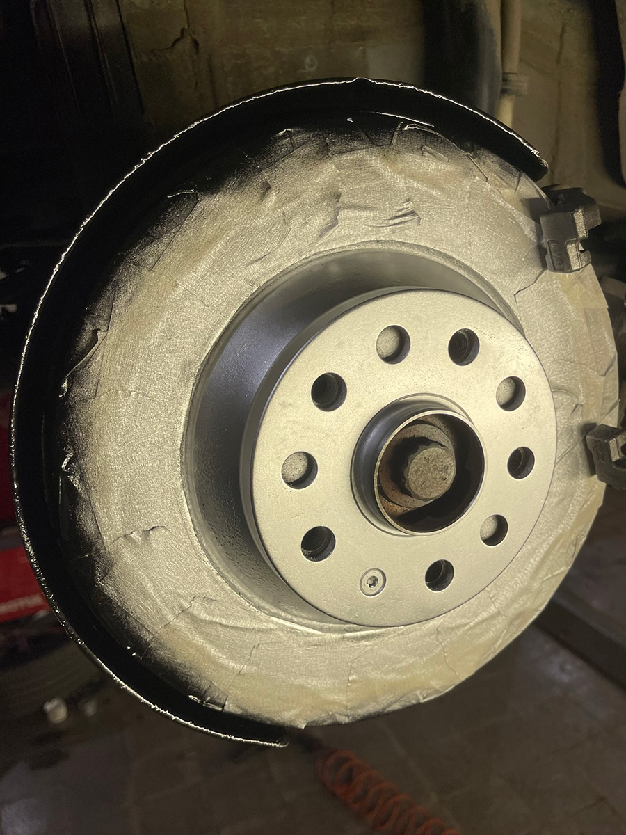 после облепих контактната площ и боядисах с високотемпературен спрей - сиво диска и черно ръба на ламарината отзад.