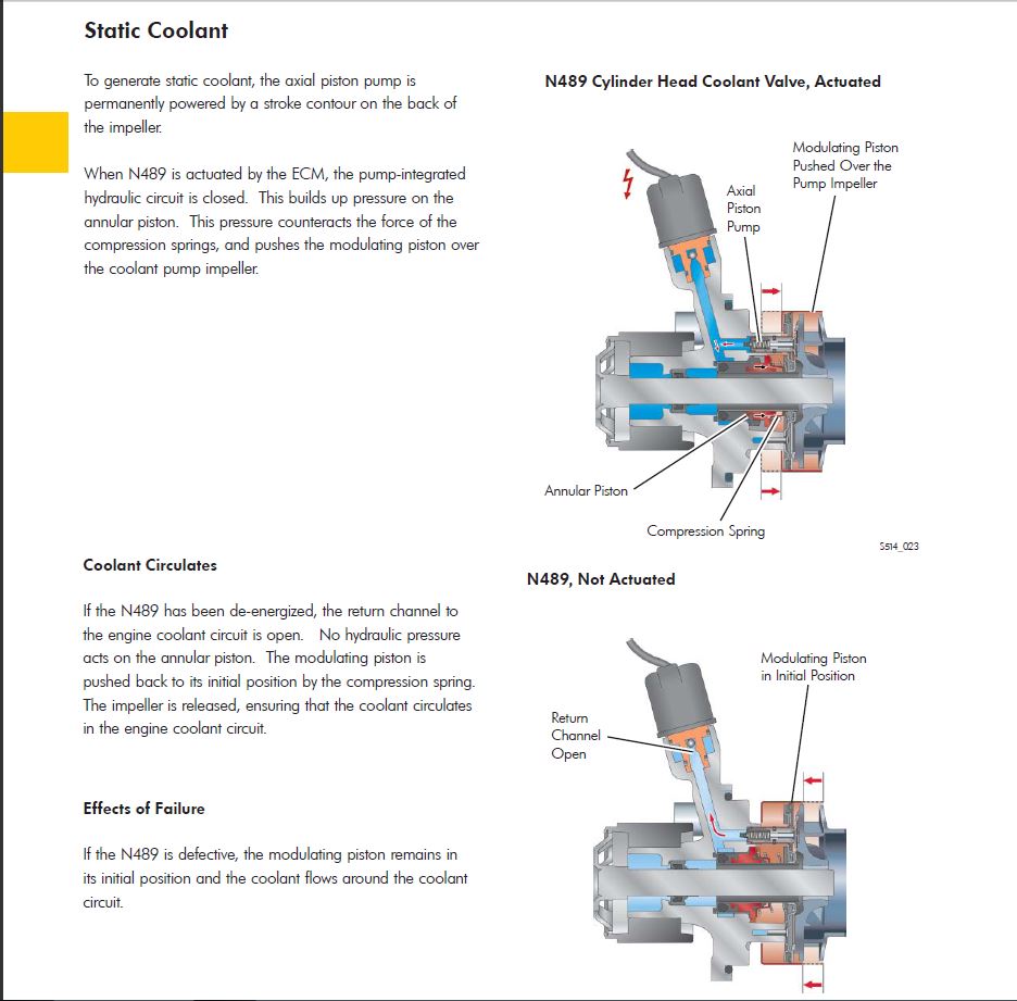 Ангренажа го напъвах доста , по-добре е , не се цепи. Водната помпа я поразгледах малко задържа пластината. Иначе се движи , не е блокирала. Така и не си обясних какво я управлява. Има соленоид , който движи една съчма, която е между два канала, в които минава антифриз. Реално за да се мести пластината се иска налягане , като надуя с въздух покрива турбината на помпата, като няма налягане се връща и става нормална помпа. Как в крайна сметка на студен двигател се появява налягане , което задейства пластината? А на топъл двигател , явно съчмата реже налягането и пластината се връща в изходно положение. Да не би някоя от допълнителните помпи да прави налягането нужно за премества на пластината и спиране дебита на основната помпа?