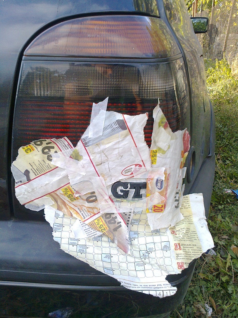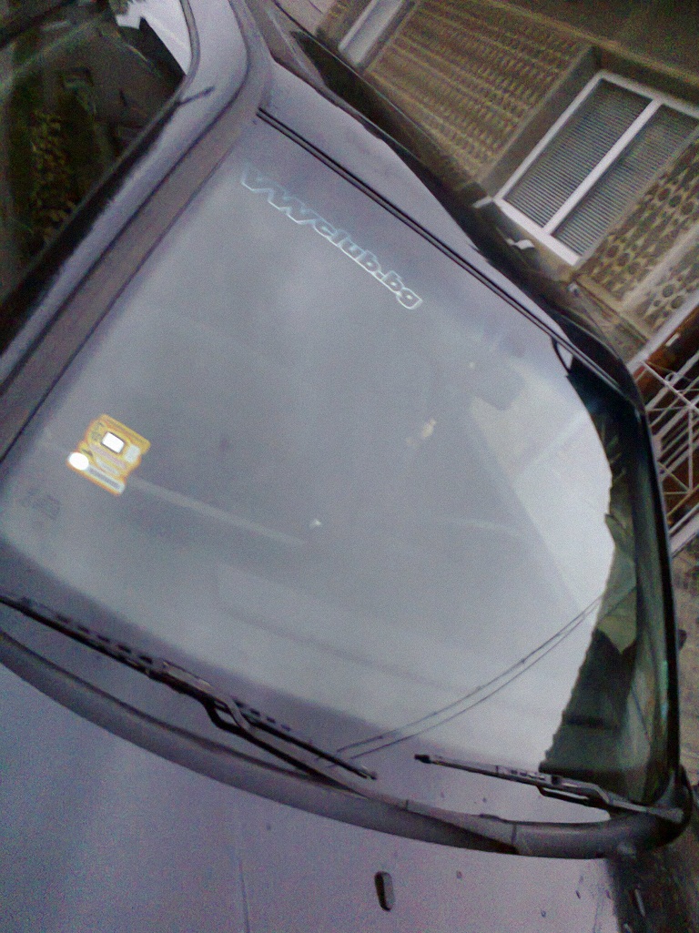 на криво е залепен за съжаление но мисля да го сменям без това и да сложа на един от страничните задни прозорци ,но това по натам