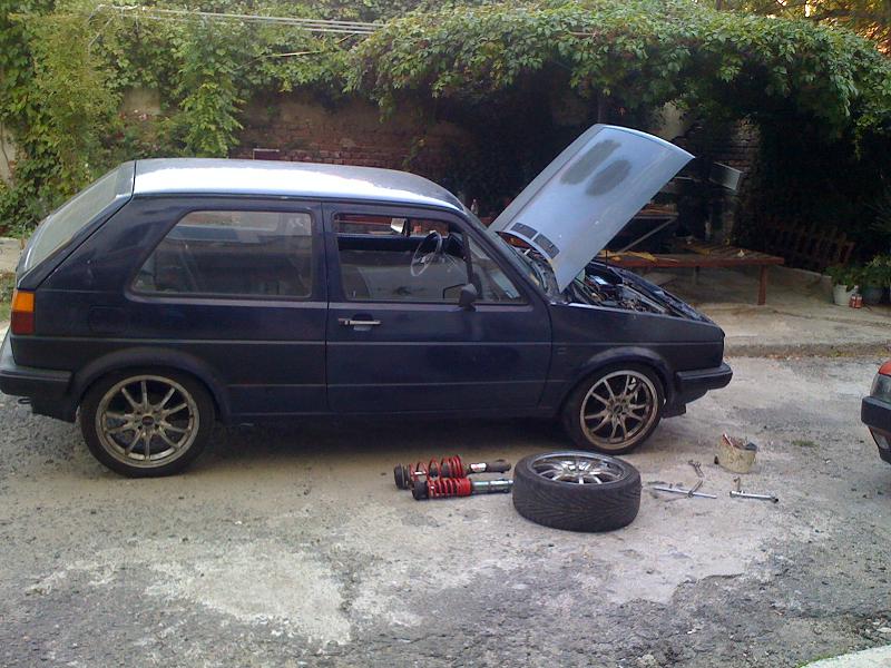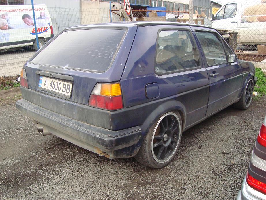 ,преди да го сложа му смених основни,биелни лагери,сегменти,главата е с нови клапани и водачи,сложих си и нов к-т съединител с притискател и маховик на 210 мм,дадох дюзите да ги изчистят,както и гнп-то да се ревизира,турбото мислех за по голямо от ккк14,но в крайна сметка дадох да му сменят всичко вътре и си го монтирах.Някаде из времето може да лепна нещо по големичко.Взех си и спирачни дискове "Brembo" Max на 256 мм със супорти и апарати от Голф гти,както и заден мост със дискове който още не съм монтирал.Сложих и накладки "Ferrodo" Racing отпред.От към интериор си изнамерих рекаро салон от голф 2....като цяло много запазен само шофйорската седалка е прокасана,но вече съм си намерил много запазен салон с кори и табло от Golf 2 G60 Rallye.Сложих си и километраж със обортомер,смених и 2-3 волана докато се спрях на "Raid"-300 mm,търся си "Momo"-280 mm(някой ако има да го дава насам).От вън сложих широкия нож и маска без емблема,класическите стопове черно червена хела(още не сам ги лакирал),и си купих нови фарове на които вградих лупи от бмв е36,като си свалих габаритите в мигачите.Взех си и кристални мигачи за отстрани и за отпред,но предните са за широка броня и ще ги вграждам в тясната за да стане уникално.Общо взето това е из времето ще има още промени от към двигателя...след като го разработя мисля да го думна на 1.2 бууст и да му пусна малко повече нафтичка.Закупих си и предна и задна разпънка...задната стана предната иска преправяне.Сложих си амортисьори на предния капак,и най-новото са уредите "VDO" от ауди купе(който се чудя как да вържа)