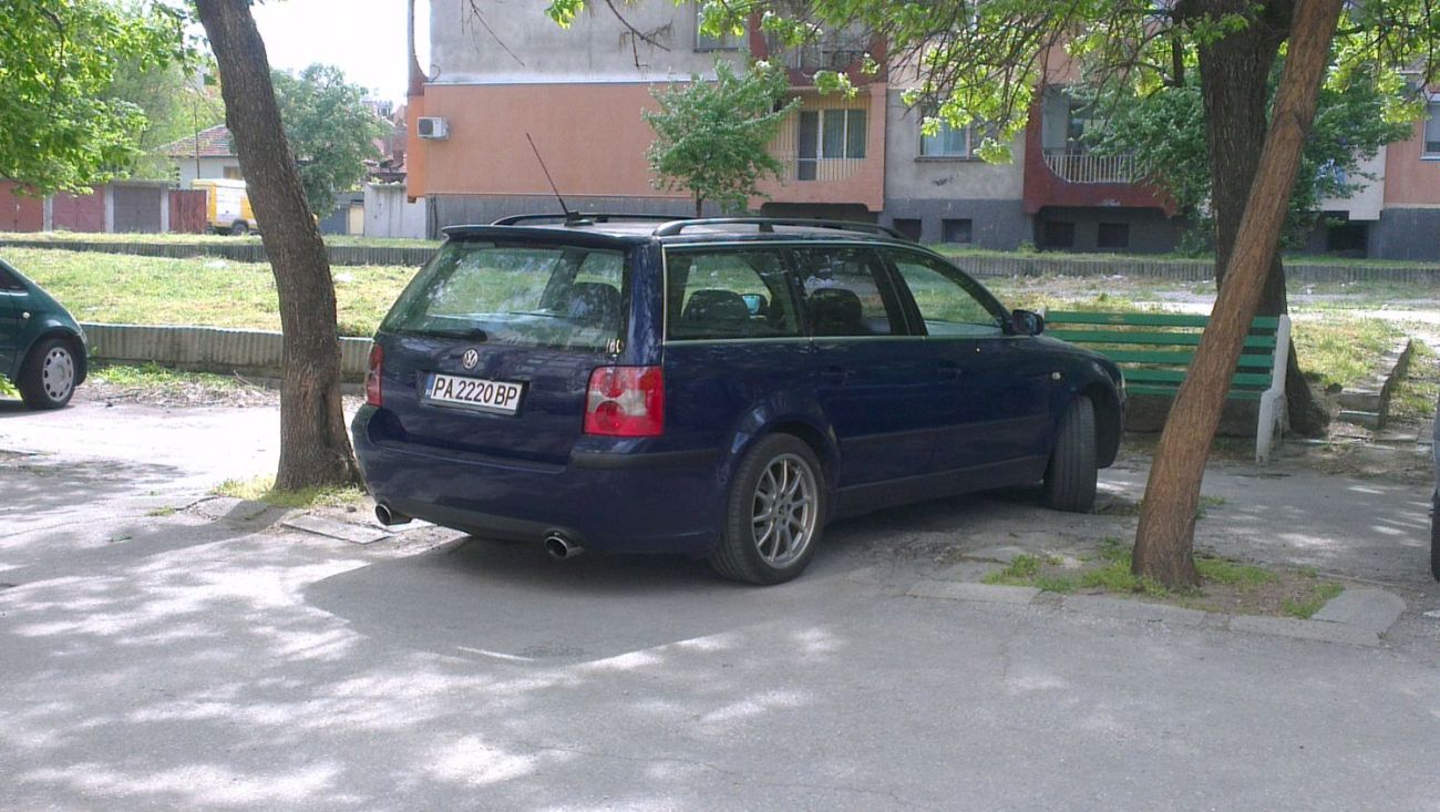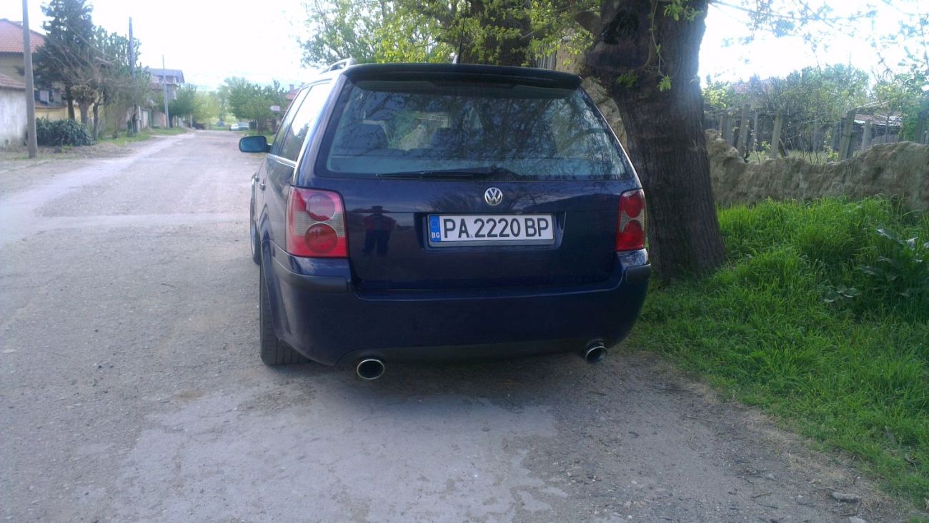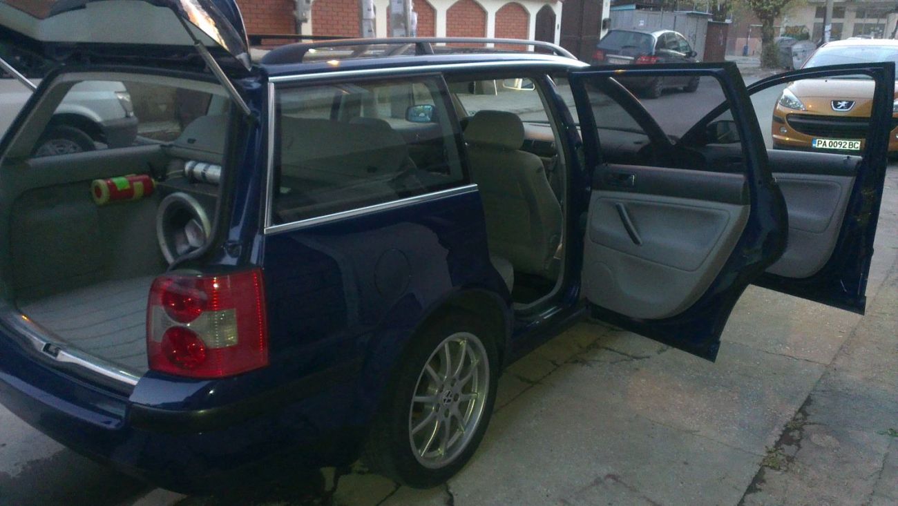 всичко започна преди около две години, когато мой приятел реши че ще живее в германия, и сподели че ще си продава колата! Passat B5,5 1,9 TDI 101 кончета! това беше момента за раздяла с астрата. за 11 години в една и съща фирма бях преминал през повечето модели на wv: golf1 golf2 polo2 polo3 passat1 passat2 passat3 всичките с ръчни скорости.passat4 автоматик- но от време на време че беше на шефа, и знам коя е правилната марка но когато купувах кола парите не стигаха за добър wv-ген! та да си дойдем на думата колата я взех без никакви пазарлъци защото знаех как е поддържана и че е от германия. когато я взех всичко по нея си беше заводско (не мога обаче да кача снимки защото не съм и предполагал че ще стигнем до тук и до този форум)и от там се започна:от 15цола минахме на 17. последва смяна на фабричното озвучаване смяната на дълго издирваната антена за gps и радио ,съвпадна с монтирането на спойлера (понеже не можах да намеря за пасат преправих такъв от голф4)