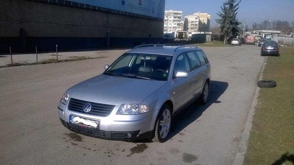 Здравейте колеги.След доста търсене и обикаляне най-накрая си харесах Пасат и без да го мисля много ощетих семейния бюджет.Пасатора е купен от Дупница от СЛАВИ КАРС без това да е реклама,че по-късно може да стане и антиреклама!Колата е 2002г 1,9 дизел 131кончета или там колкото са останали живи.Хайлайн пакет,Гама радио,чейнджър и черен кожен салон с обърната алкантара.За километри не знам.Пише 185000.Проверих я в Ауди София имам познат.2009г е била на 92000км така ,че се надявам да сме около 185000км.