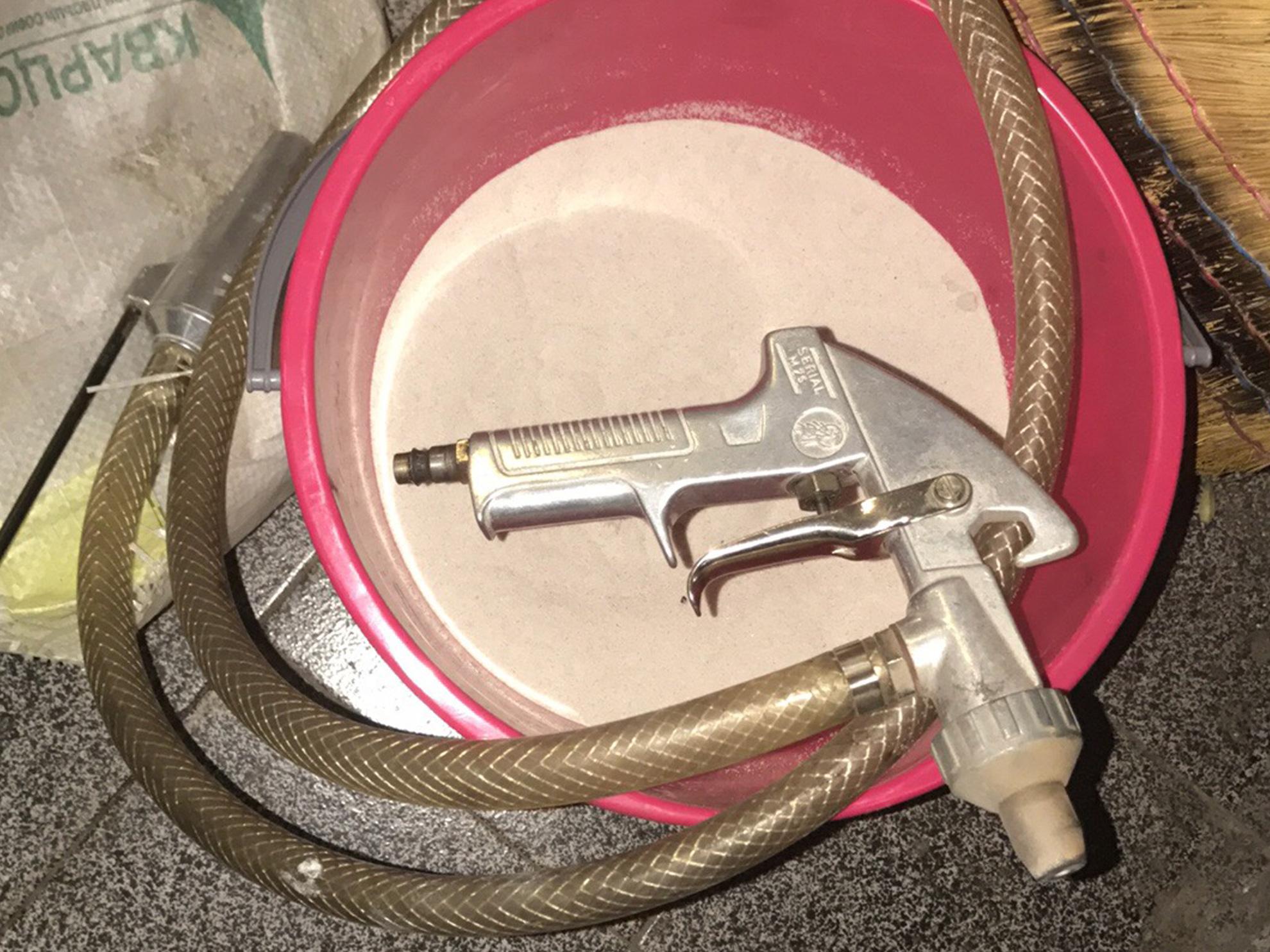 Снабдих се с пистолет за пясък, както и с кварцов пясък: