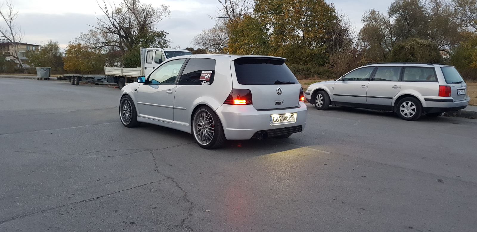 И следва любимата ми част, мечтата ми R-Line задна броня, заедно с поръчкови стопове с лакирано .:R лого с мощни диодни крушки за да свети И да се вижда дори на директна слънчева светлина, нещо което досега не съм виждал на лакиран и тъмен стоп. Махане на гадните прагове и слагане на такива от R32. Взех и оригинален лип от Cupra, който си пасна идеално с бронята. И тон още неща който не мога да се сетя всички, R32 табло, разпънка, капак за антифриз от с3, ултразвуков парктроник без да се дупчи бронята(състой се от дълга лента която се лепи на вътрешната страна на бронята), Bora духалки, алуминиеви елементи за огледала, фарове решетки итн, R32 рамена и чисто нови чистачки Bosch AeroTwin. И топа на топа за мен тъй като съм музикален фен, тотално преобразувах музикалната система, мотивирайки се след като чух музиката на Светлю който спечели феста. Взех 12 инчов двунамотков Boschmann буфер с 440 реални вата и го закачих на Alpine моноблок, на предна линия поставих Hertz DSK 165 двукомпнонентна система заедно с ESK 690 за задна и ги вързах на 4канален усилвател заедно с кондензатор и всичко друго както си му е реда. Взех и висок клас Pioneer CD с 6 RCA входа за да мога да натикам всички тия усилватели и говорители там и резултата за парите си беше супер задоволителен. Вече почна малко да ми малее, но всеки който се е возил в колата остана изключително впечатлен от силата и качеството.