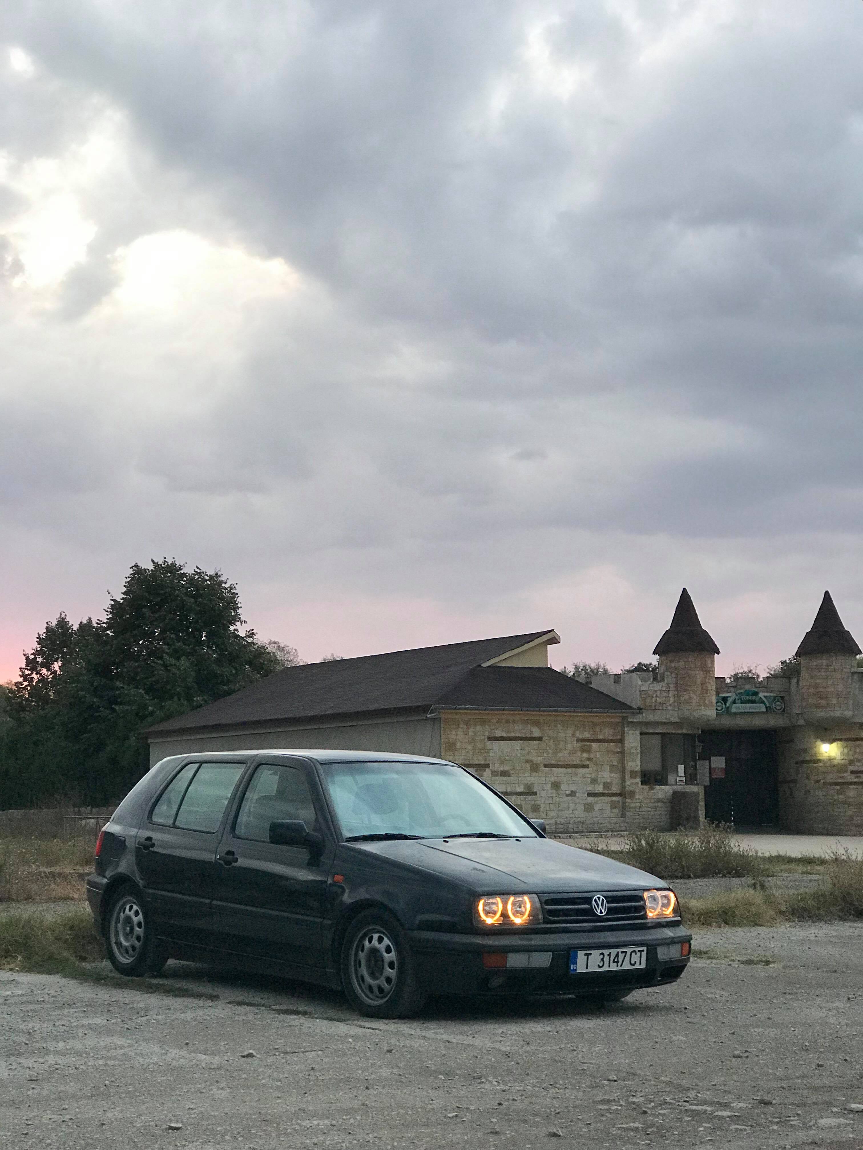 .. Не съм сложил бронята от венто, защото на снимките ми се стори нормална, а като дойде беше цялата пластмасова, може да са ми пратили други снимки, а и не я върнах защото трябваше да платя към 80лв, поне ще имам резервна. Единствено мога да използвам ножа с който дойде както и решетките за бронята под мигачите. Джантите които ще видите на снимките са с летни гуми и бяха непрофесионално пребоядисани от мен като първо бяха изшкурени и почистени, а след това със спрей за джанти и лак бяха завършени. На тях ще бъдат сложени чисто нови зимни гуми за предстоящия зимен сезон, а вмомента търся нови джанти за чисто новите летни гуми който ще поръчам в началото на годината. Старите джанти с които дойде колата бяха от опел и бяха 13ки, бяха разширявани и много трудно слязоха от голфа. Най-вероятно ако ми се занимава ще ги изшкуря, пребоядисам и продам със гумите които са на 90%. Обмислям да сложа фланци иска ми се да са 15ки джантите, но в момента 14ките не опират защото са вътре в калника, но ако се изкарат с фланци ще са на 1 пръст и може да опре. В момента обмислям какви фланци да взема и да видим как ще стоят оригиналните 14 ки и след това ще реша дали ще са 14 или 15. Друго за което се сещам иска ми се до края на годината да намеря кожено рекаро салон от друга 3ка както и да сложа вежди на калниците и да сменя мзуиката с такава на Pioneer с колонки и отзаде на вратите без бас каса(не си падам по сватбите)