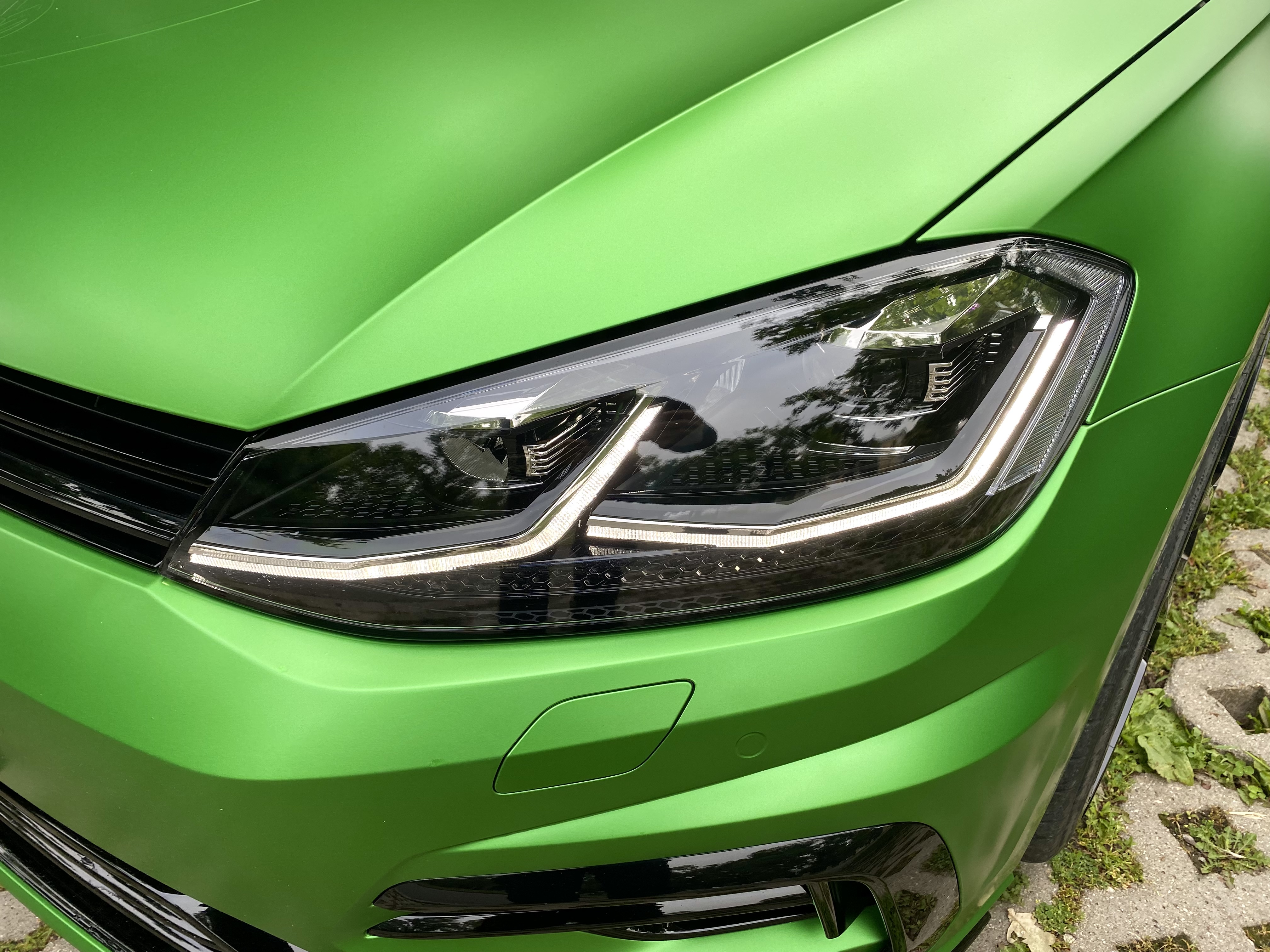 Работата, която свършиха включва: Цялостно външно облепяне в цвят Matt Krypton Green от PWF – Platinum Wrapping Film от Bulfolio. Релсите на тавана, страничните огледала, хромираната лайсна в предната решетка и задната емблема облепени в черен гланц. Хромираната част на „R“ емблемите е в жълт гланц. Джантите и спирачните апарати са с керамично покритие XPEL Fusion Plus Wheel & Caliper. Предните стъкла (врати и челното стъкло) са с поставено слънцезащитно фолио Bruxsafol Ultra Nero IR75. Бялата част на стоповете са със защитно фолио XPEL Slate Smoke 50, а дистроника с XPEL Slate Smoke 35. Защита на фаровете със Solar Gard Clearshield Pro Hydro.