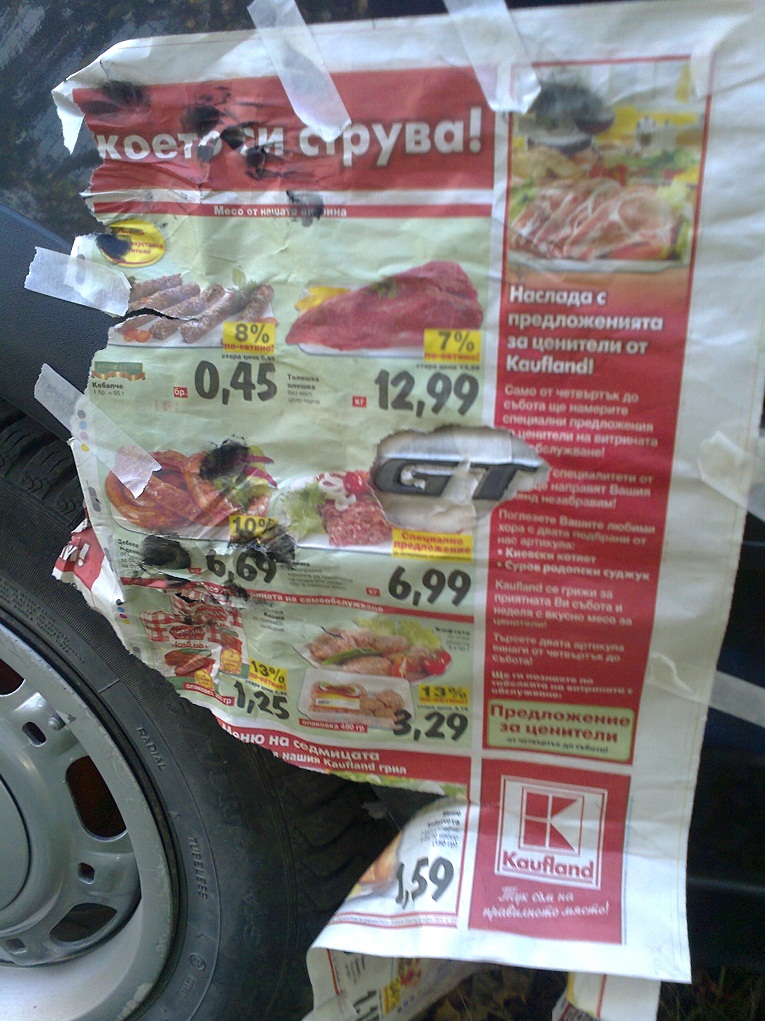 на криво е залепен за съжаление но мисля да го сменям без това и да сложа на един от страничните задни прозорци ,но това по натам ;)