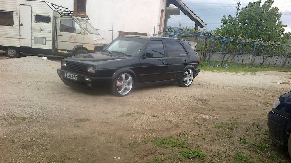 здравейте колеги от името на един колега и мои приятел (минката82)които ме помоли да му направя тема на колата му щото няма време и възможност,а тя е голф 2 1.8 16в КР много хубава кола 1991година,с 4врати, като екстри има централно заключване,аларма,ел. стъкла,рекаро седалки в последствие се смениха с кожени седалки и след това с дълбоко рекаро от голф 3 гти едишън,15ки джанти след което ги замениха 17 цолови с гуми 205.40.17,спортно окачване КВ след което последваха койловери,колата беше с км-траж до 8хиляди оборота и 260км случайно намерихме дигитално табло и го монтирахме него, решихме да направим нещо по различно по колата а то е стъкла от 2врат голф 2 които монтирахме с малко рязане и преправяне на задните врати,също в спойлера на багажника беше вграден 3ти стоп който стана много оригинален