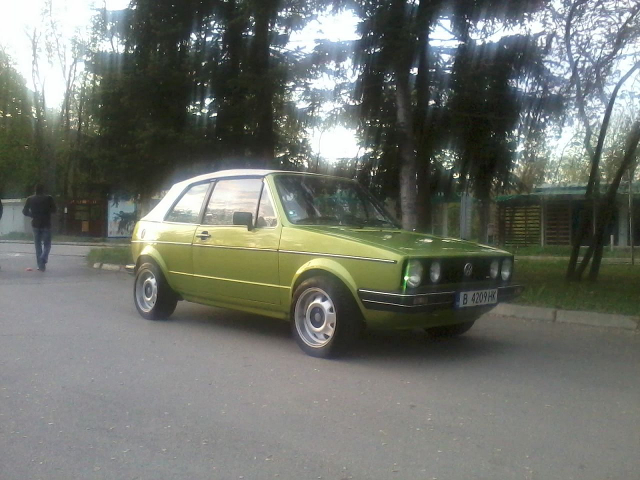 Oригинално GTi/GLi кабрио с 1.8 DX мотор. Двигателя е оригиналния за модела - К-Джетроник пълна "механична" инжекция, но е повече от 112 кончета (тунинг в Германия) - по-агресивен разпределителен вал, по-висока степен на сгъстяване, пърформанс изпускателна система и т.н. Колата е реставрирана от братя Васкови от Габрово. Същите притежават и една от малкото оцелили в България състезателни Шкоди 130 RS (в перфектно здраве - показаха я на ретрото в Бургас миналото лято). Единичката е реставрирана изцяло - както ламарини и боя (боята е Дюпон), така и всичко останало - спирачна система, окачване, цялото оборудване около двигателя на практика също е ново - съединител, спирачни дискове/накладки, ремъци, маркучи и т.н. Гюрюка е нов (бяла кожа и внос от Англия с голям секурит отзад), а салона е много запазен - комбинация от бяла кожа с промазан плат. По колата на практика всичко е оригинално и работи. Динамиката е чудесна - по GPS ускорява до 100 за под 8.5 секунди (на 2ра прави точно 100 и прекъсвача на делкото се включва :)). Какво друго - ами тези дни я обухме с едни хубави ATSки, а се очертава до няколко дни да и взема и едни 14ки AVUS (също ориганлни за годините и модела).