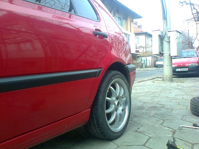 Колата вече е с монтирани 16-ки. Може би направих грешка с избора на размер на гумите- (205/50) мисля, че са прекалено високи и самата джанта изглежда по- малка. По- натам ще търся гуми на 45 височина- това е най- компромисния вариант. Но за сега ще я карам така. И по случай настъпилата пролет, следващата вълна която ще обхвана е свързана с кар- аудиото...