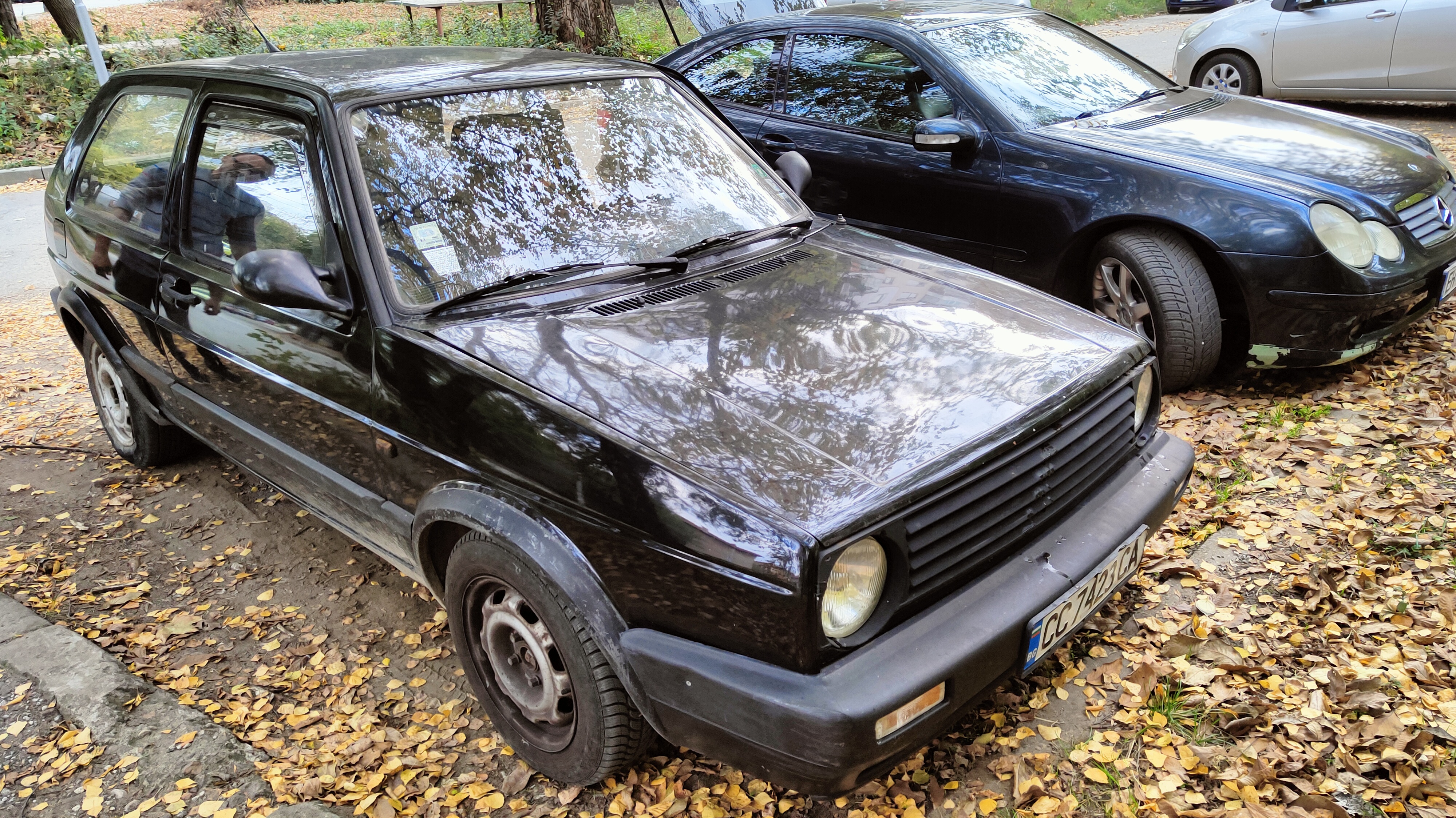 Отново почвам нова тема. Днес спасих един ветеран от вторичните суровини. 1990 година голф 2. Супер лъскач с редовни документи и без код на двигателя. Срещу скромната сума от 300 лева стана мой. Издухал е гарнитура на главата,но това не ме спира да го подкарам. Целта е да я стегна и продам на някой мераклия. Не ми трябва трета кола . :th_up