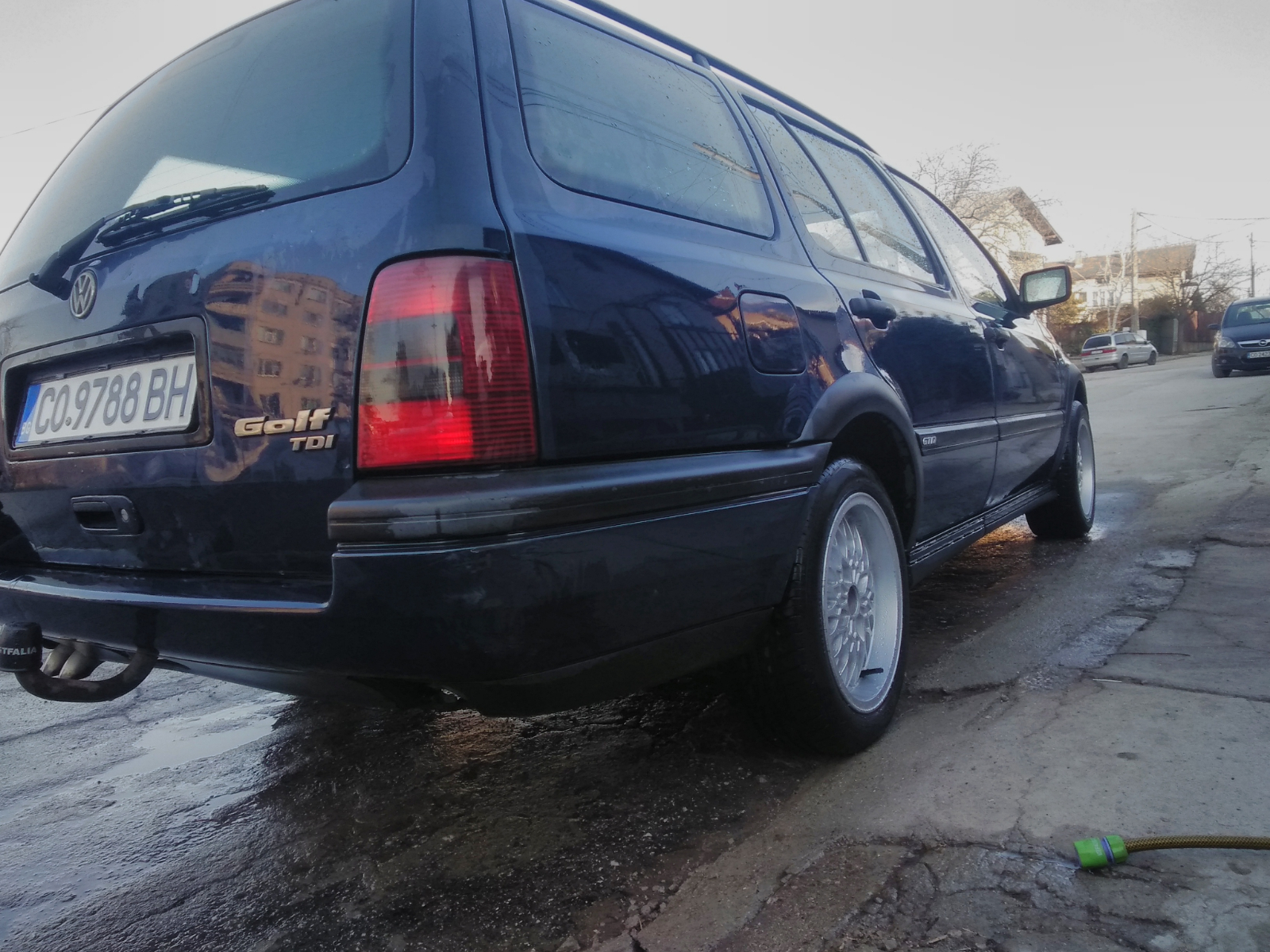 След няколко месечно търсене на кола един приятел ми писа да му дам някой лев повече и да ми даде въпросния голф който си мислех ,че няма да бъде продаден дълго време....та както и да е това е 3-тото тди което купувам и този път съм уцелил десетката,ако четеш това (евала баче Коле) колата е перфектна както ми каза, колата е 96г производство 1.9 тди 90коня вариант синхро на 167 500 км реални. Упощена от към екстри единствено клима , шибедах, и Аirbag но общо взето друго не ми е нужно.доста запазен екземпляр и единственото безшумно тди което съм виждал и карал , а колкото до синхро системата бях много скептично настроен към тази кола но безоснователно вече 2 месеца я карам и впечатленията са ми многоооо добри,бях чувал какви ли не глупости че синхрото не е надеждно чупливо и какво ли не ,е дами и господа когато една система е обслужвана на време всичко е то,работи както на пред така и назад на пътя се държи страхотно.3-ти собственик съм на колата.Докарана в България на 103 000км и не беше карана няколко години,благодарение на моя приятел беше възродена така да се каже техническото състояние е без каквато и да е забележка интериора също единствените забележки са външни но живот и здраве и тяхния ред ще дойде. Ето и няколко снимки :love.vwclub