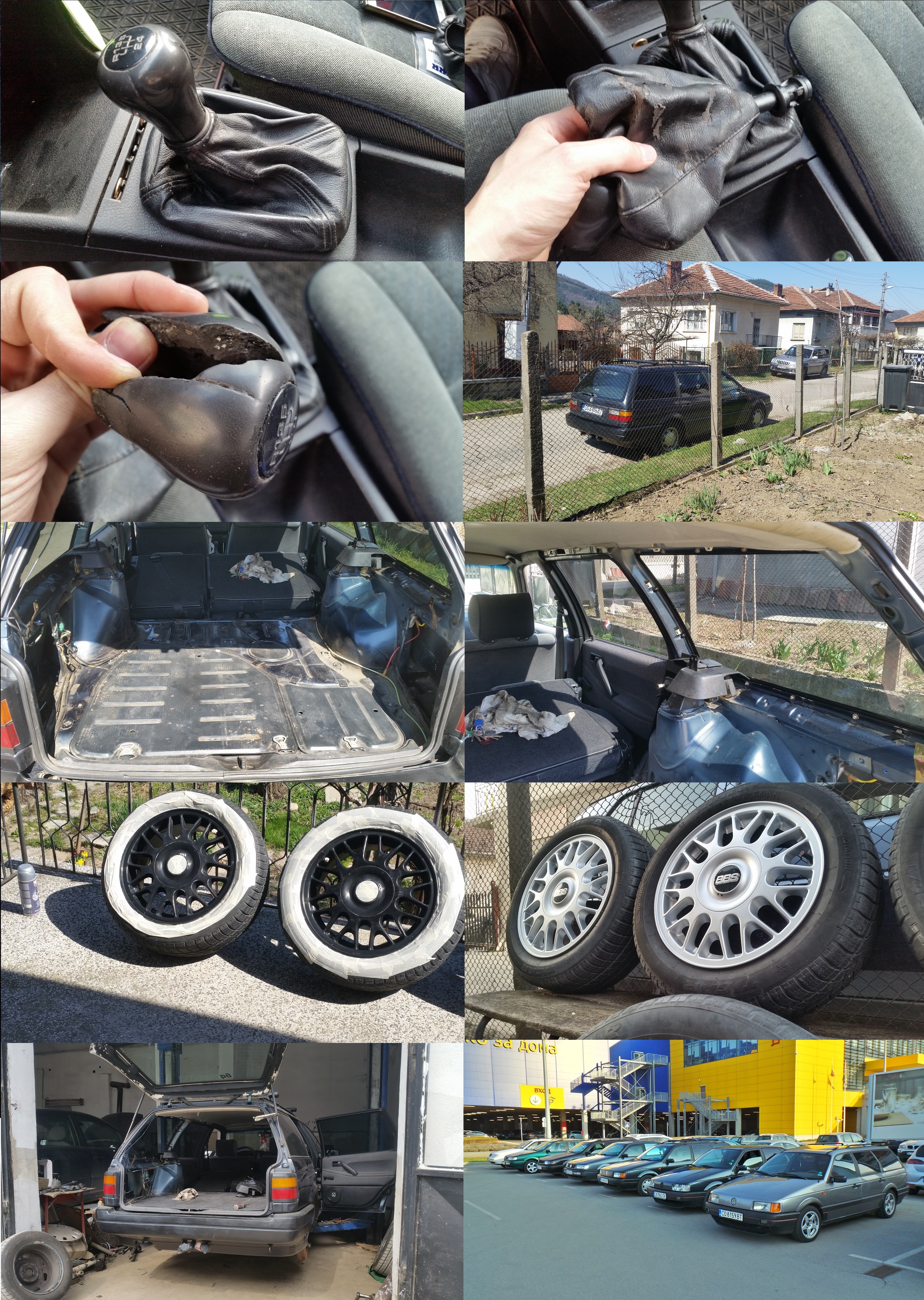 С месеците каране, задницата започна много да подскача, колата стана нестабилна и на магистралата повече от 90-100км/ч не смеех да вдигна. Още, когато газаджията ми монтираше уредбата преди година, ме предупреди, че и задните амове са сдали багажа, но нямах финанса да ги оправям. Е, вече бях събрал достатъчно, за да оправя и тях и да стегна предницата. Прибрах се в родния град и започнах да свалям багажи и пластмаси от багажника. :rolleyes Предпочитах сам да го направя, за да не липсват половината винтове, след като си взема колата от сервиза. Докато чаках зелена светлина от сервиза, реших да поработя малко с BBS-ките, за да са готови след месец, когато вече зимните гуми се свалят. Изшкурих, изчистих и боядисах. Отново, знам че съм претупал нещата и даааа, знам че няма да издържи спрея много време.. :wink От сервиза се обадиха, че мога да закарам колата и ремонта започна - нови Monroe задни амортесьорчета, заден десен лагер (левия го смених миналата година по това време), тампони на носачите, шарнири, външно ляво каре, десен накрайник на рейката, реглаж (при който се оказа, че задния мост е разчекнат.. бако здраво е товарил Пасата и скоро ще издиря друг мост, но с дискове, защото имам лоши спомени с тия барабани от първата кола) и празен джоб. :mhihi