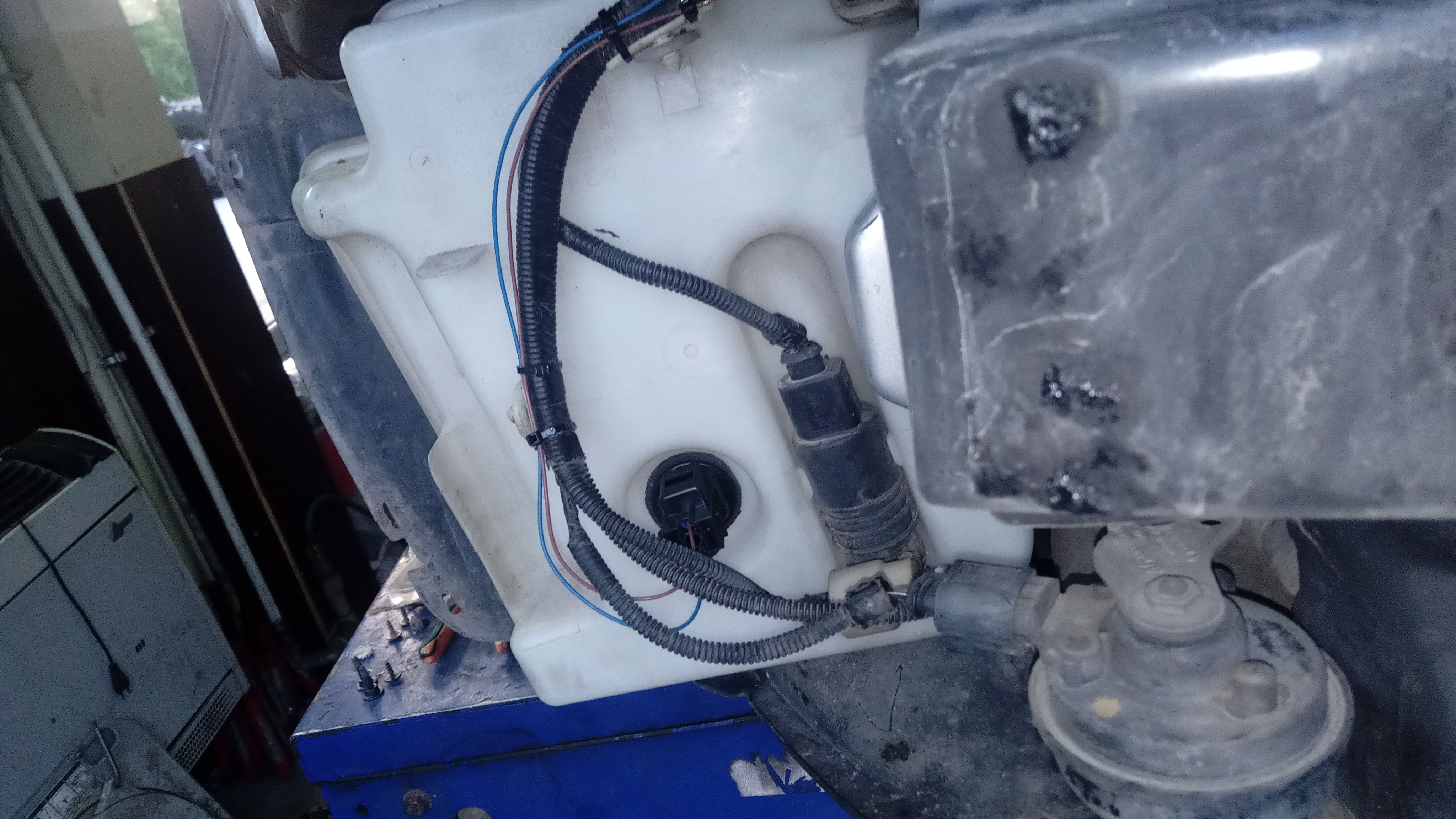 Много ме дразнеше, че казанчето за течността на чистачките е в калника, а като по-ранен екземпляр, моят Голф нямаше датчик за ниво. Много неприятно ми напомняше на френски автомобил. Значи трябваше да се постави датчик. След необходимото окабеляване до таблото и настройката с VCDS, това бе коригирано.