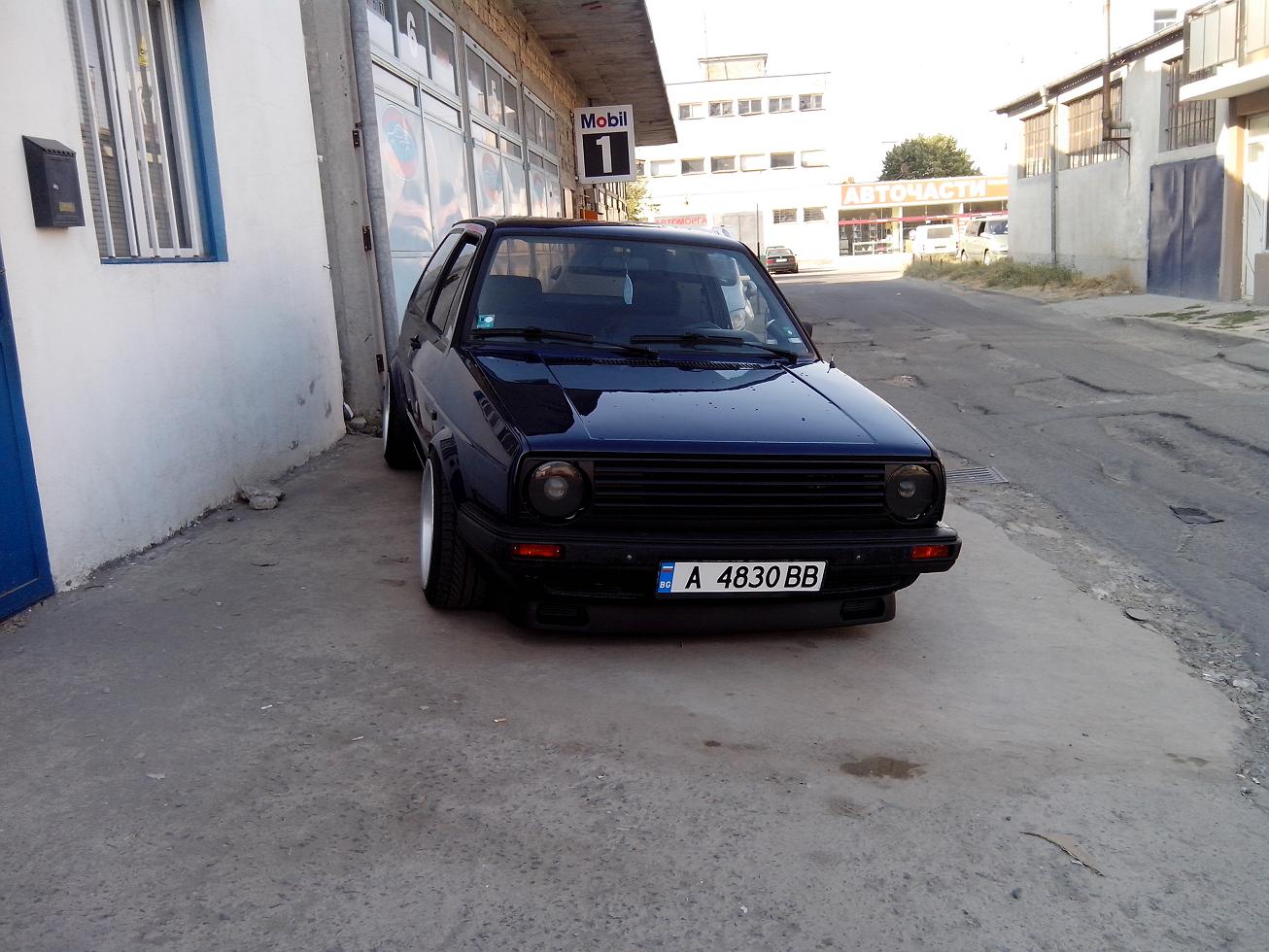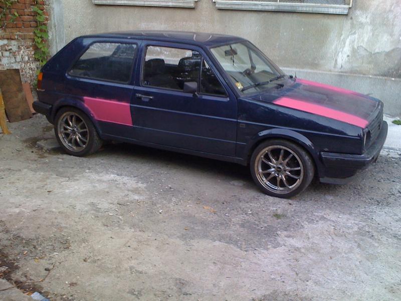 ,преди да го сложа му смених основни,биелни лагери,сегменти,главата е с нови клапани и водачи,сложих си и нов к-т съединител с притискател и маховик на 210 мм,дадох дюзите да ги изчистят,както и гнп-то да се ревизира,турбото мислех за по голямо от ккк14,но в крайна сметка дадох да му сменят всичко вътре и си го монтирах.Някаде из времето може да лепна нещо по големичко.Взех си и спирачни дискове "Brembo" Max на 256 мм със супорти и апарати от Голф гти,както и заден мост със дискове който още не съм монтирал.Сложих и накладки "Ferrodo" Racing отпред.От към интериор си изнамерих рекаро салон от голф 2....като цяло много запазен само шофйорската седалка е прокасана,но вече съм си намерил много запазен салон с кори и табло от Golf 2 G60 Rallye.Сложих си и километраж със обортомер,смених и 2-3 волана докато се спрях на "Raid"-300 mm,търся си "Momo"-280 mm(някой ако има да го дава насам).От вън сложих широкия нож и маска без емблема,класическите стопове черно червена хела(още не сам ги лакирал),и си купих нови фарове на които вградих лупи от бмв е36,като си свалих габаритите в мигачите.Взех си и кристални мигачи за отстрани и за отпред,но предните са за широка броня и ще ги вграждам в тясната за да стане уникално.Общо взето това е из времето ще има още промени от към двигателя...след като го разработя мисля да го думна на 1.2 бууст и да му пусна малко повече нафтичка.Закупих си и предна и задна разпънка...задната стана предната иска преправяне.Сложих си амортисьори на предния капак,и най-новото са уредите "VDO" от ауди купе(който се чудя как да вържа)