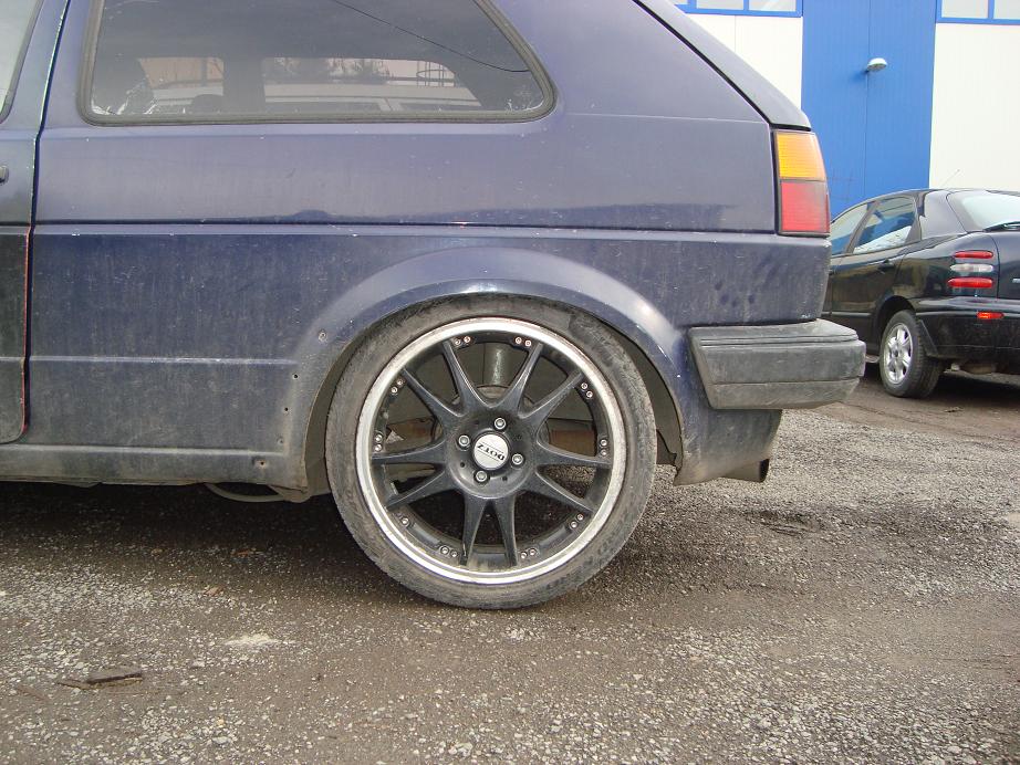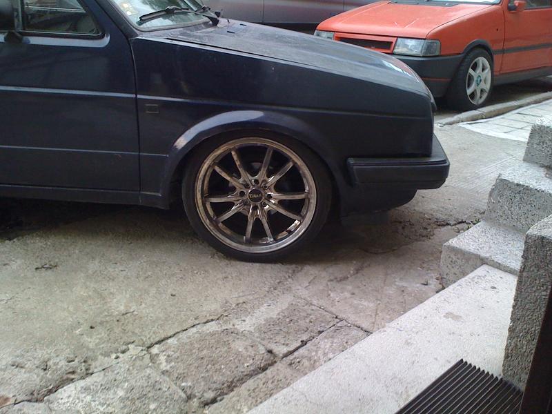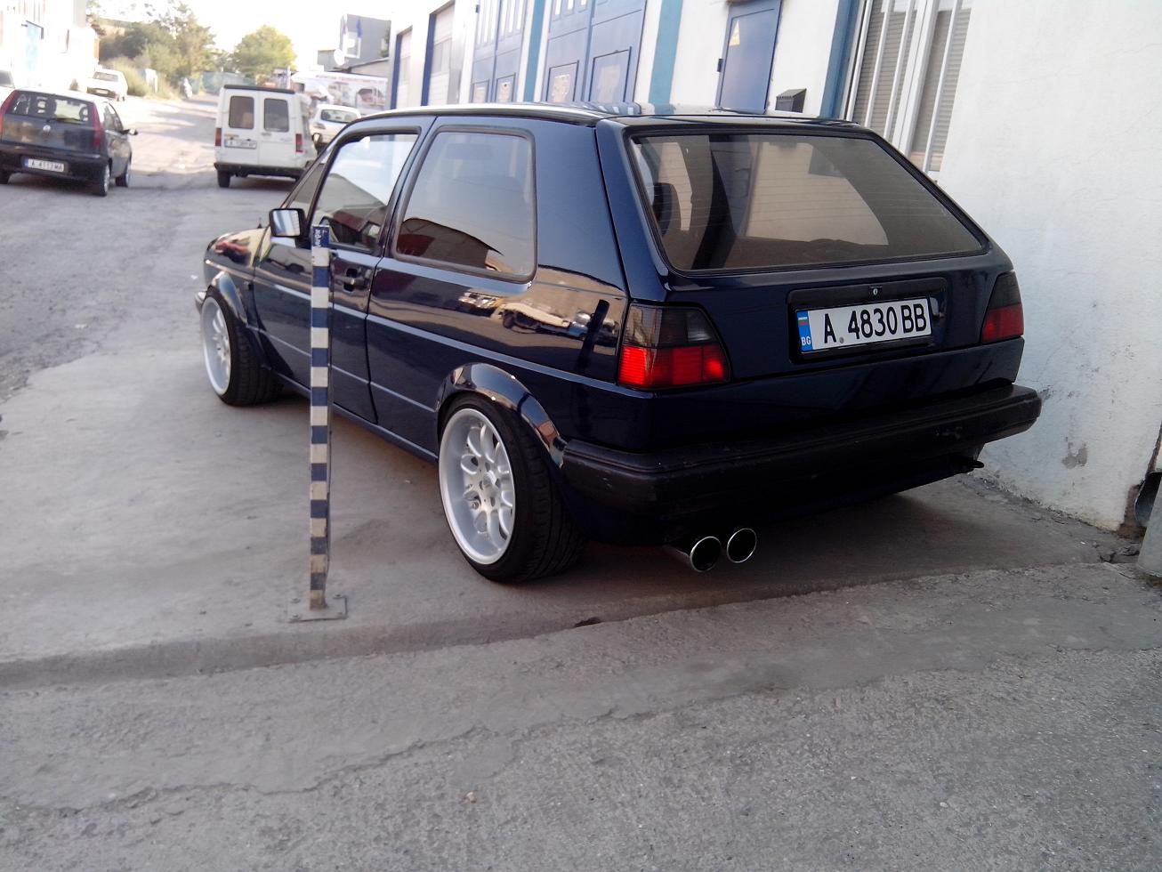 Привет на всички колеги,реших и аз да си покажа ретро количката с която се позанимавах доста време и все има нови неща които искам да направя хахаха.В началото беше 1.6 чист дизел и си мислех само окачване и джанти,но в последствие се оказа че не мога да имам обикновено голфче и се започна...смених 3-4 комплекта 17 цолови джанти докато мирясам...с тия валяци 16 цолови "Brock" B6 9J Et15 4бр. :Mr Green Fun ...Още докато бях със 17-ките сложих -40мм спортни пружини и амортисьори газ+масло "Monroe"-Reflex...но естествено не ми хареса височоната исках по-ниско,за целта си потърсих и си намерих "Coilovers"-"Raceland",и така се стигна до огъване и издуване на калниците.Взех си и хидравлична рейка с помпа...че тия валяци с комбинация с малък волан не ми се отразиха на добре.Смених и няколко вида накрайници на изпускателната с-ма...докато мирясам с 2бр накрайника от гърне "Remus" на ф100 всеки.Които заспаха на вече новата ми генерация на ф60 за новия мотор от пасат 1.6тд с код "SB" на мотора или мощните 82кс :mrgreen ,преди да го сложа му смених основни,биелни лагери,сегменти,главата е с нови клапани и водачи,сложих си и нов к-т съединител с притискател и маховик на 210 мм,дадох дюзите да ги изчистят,както и гнп-то да се ревизира,турбото мислех за по голямо от ккк14,но в крайна сметка дадох да му сменят всичко вътре и си го монтирах.Някаде из времето може да лепна нещо по големичко.Взех си и спирачни дискове "Brembo" Max на 256 мм със супорти и апарати от Голф гти,както и заден мост със дискове който още не съм монтирал.Сложих и накладки "Ferrodo" Racing отпред.От към интериор си изнамерих рекаро салон от голф 2....като цяло много запазен само шофйорската седалка е прокасана,но вече съм си намерил много запазен салон с кори и табло от Golf 2 G60 Rallye.Сложих си и километраж със обортомер,смених и 2-3 волана докато се спрях на "Raid"-300 mm,търся си "Momo"-280 mm(някой ако има да го дава насам).От вън сложих широкия нож и маска без емблема,класическите стопове черно червена хела(още не сам ги лакирал),и си купих нови фарове на които вградих лупи от бмв е36,като си свалих габаритите в мигачите.Взех си и кристални мигачи за отстрани и за отпред,но предните са за широка броня и ще ги вграждам в тясната за да стане уникално.Общо взето това е из времето ще има още промени от към двигателя...след като го разработя мисля да го думна на 1.2 бууст и да му пусна малко повече нафтичка.Закупих си и предна и задна разпънка...задната стана предната иска преправяне.Сложих си амортисьори на предния капак,и най-новото са уредите "VDO" от ауди купе(който се чудя как да вържа)