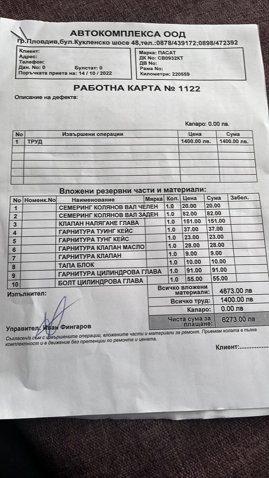 Според последната работна карта, основния ремонт е направен при 220 000км? Преди 10 дни? Много пари, за да я продадеш веднага.
