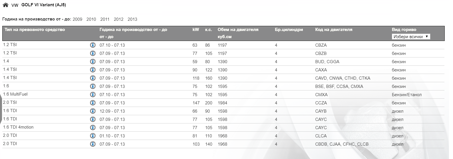 - Двигател: CAYC 1600 TDI BMT DSG 2013