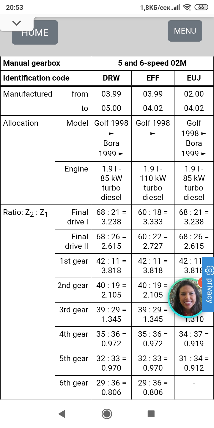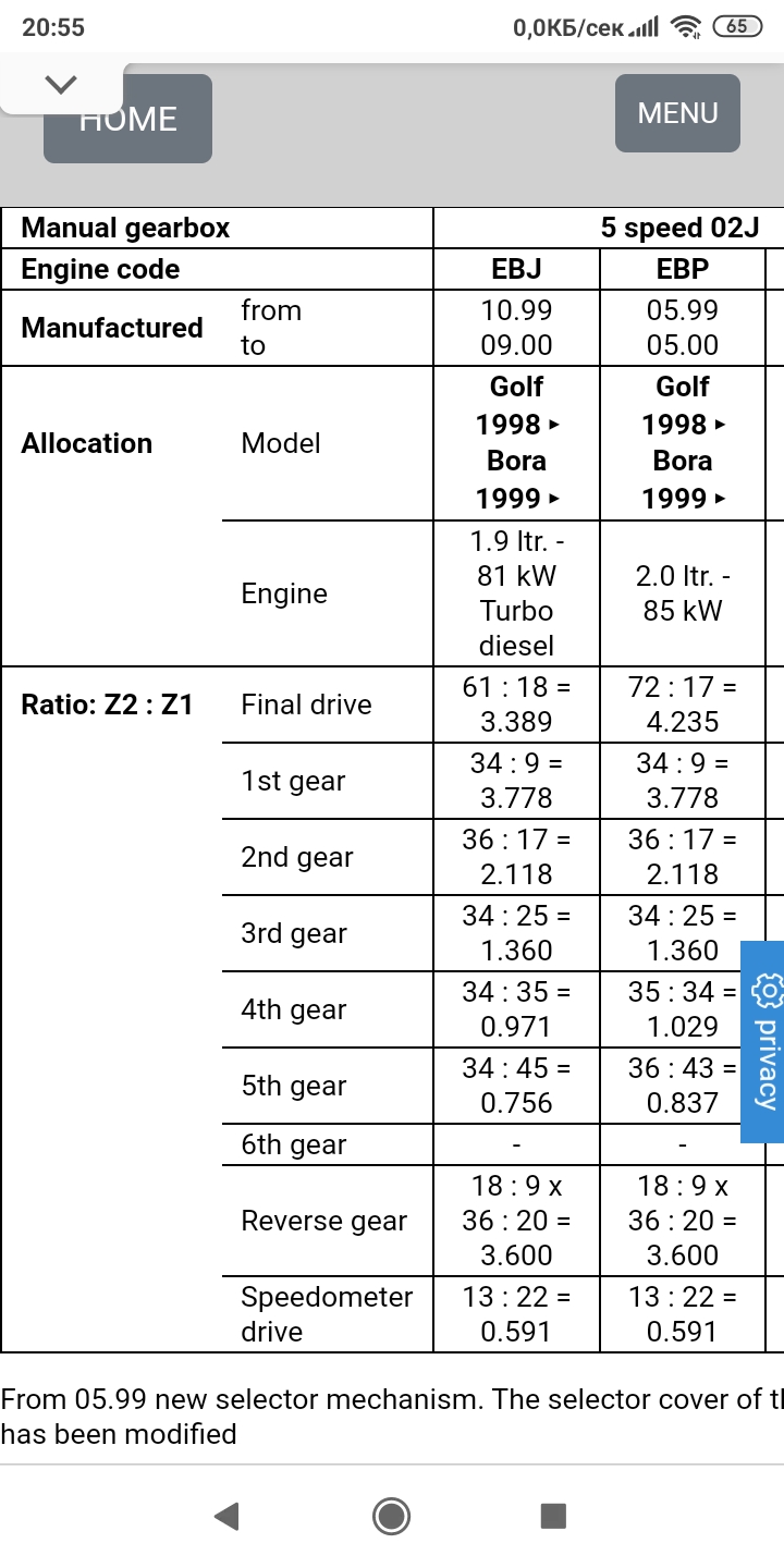 Това е което намирам. От това което виждам,на 6та предавка на 116ката числото е 0.806(код на кутията DRW),а на 5та на 110ката е 0.756(код на кутията EBJ),и 0.769(код на кутията EGS),което предполагам е по-добре. Казвам предполагам защото не ги разбирам много нещата.