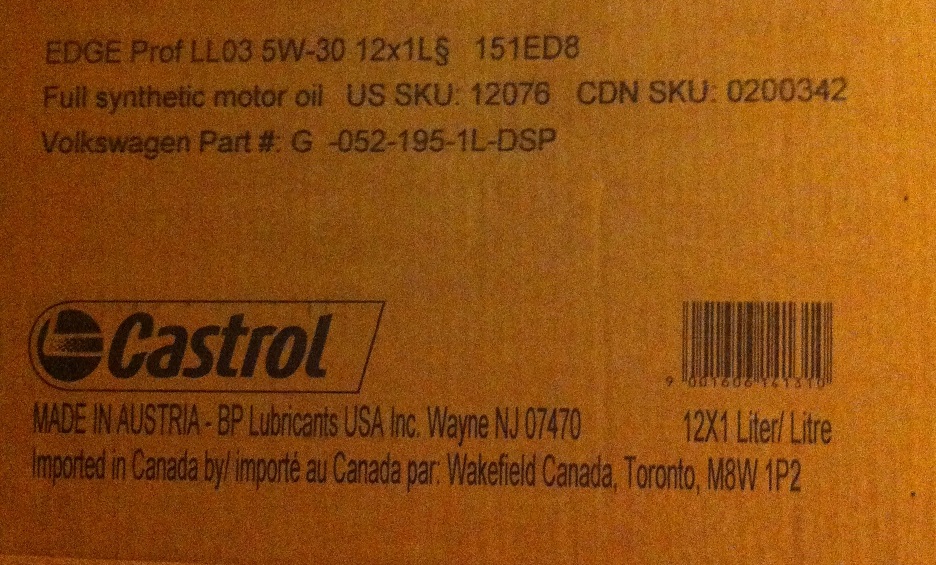 VW LongLife III 5W-30 (VW Part Num. G 052 195) = Castrol EDGE Professional LongLife III 5W-30