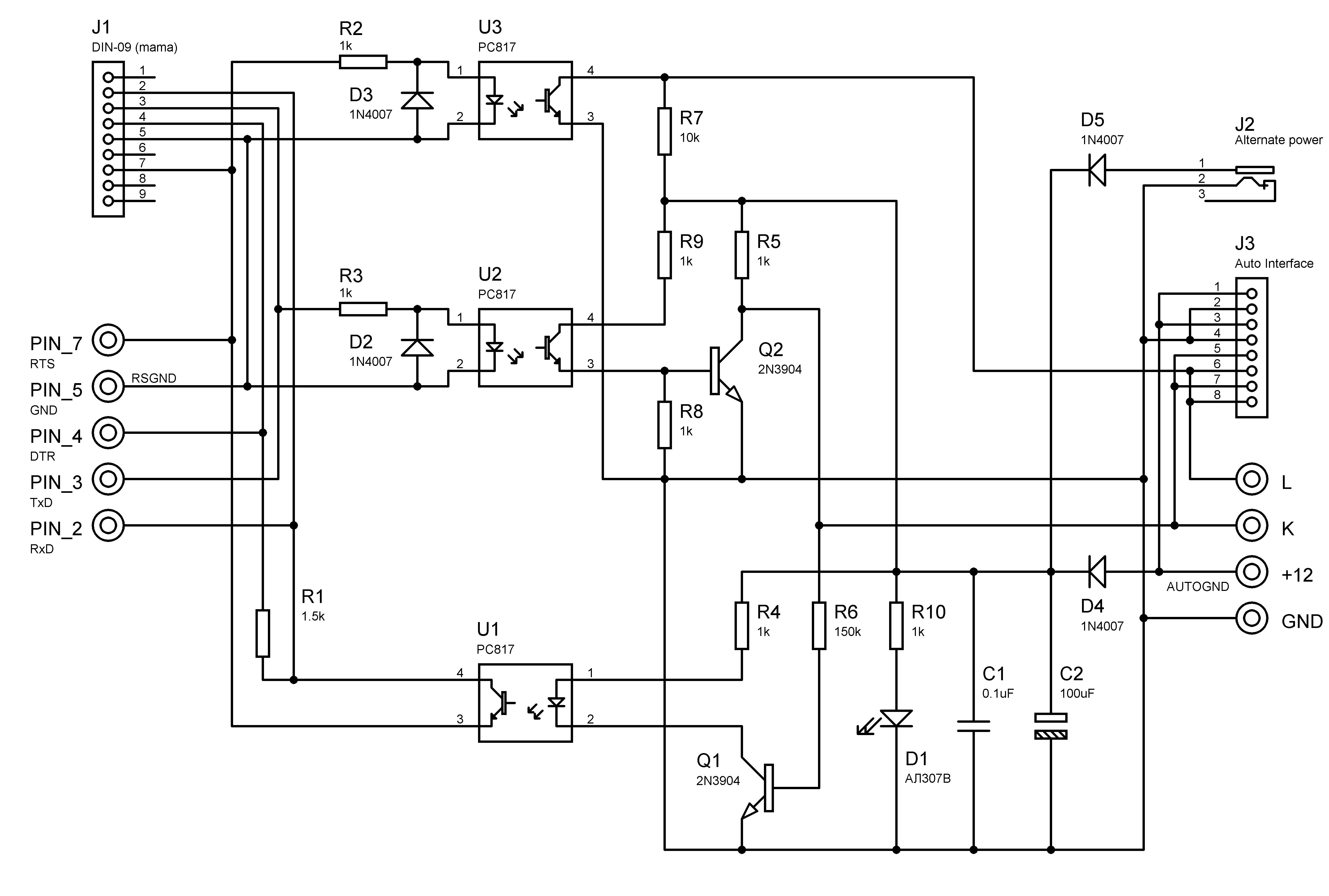 Това са четири перфектни схеми за адаптер. Две от тях са за УСБ (ККЛ), две са за КОМ порт (КЛ с оптрони или КЛ с MAX232). И четирите схеми работят прекрасно. Адаптерите работят с много софтуери за диагностика на различни марки (VAG, Opel, Volvo, Lada, BMW, Mercedes и др.). Най-добра е схемата реализирана с чип FT232.