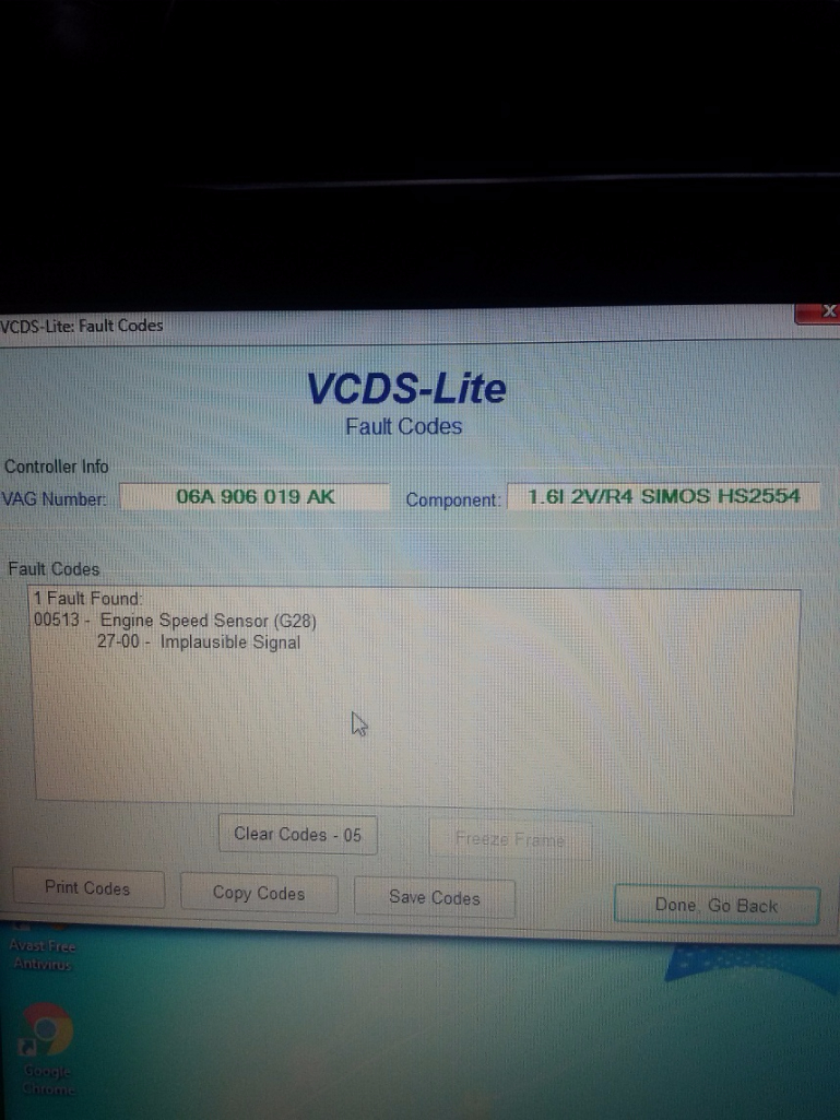 Грешка не дава, но това е за Голф 1998г.1,6 ,АКЛ.Вчера го пробвахме на Голф 2000г. 1,9 АЛХ -моят и кабела влезе в контролерите.Липсваше ми TDI timing но това е проблем на софтуера.