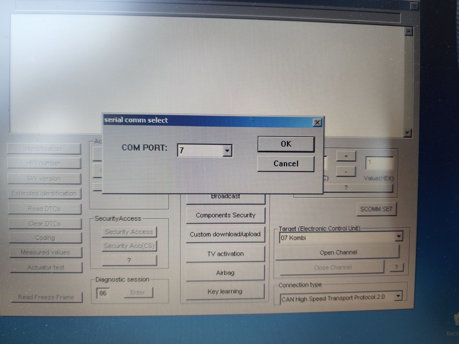 С VAG Commander , разпознава ком-порта по който се свързва, но не може да се свърже с устройството.