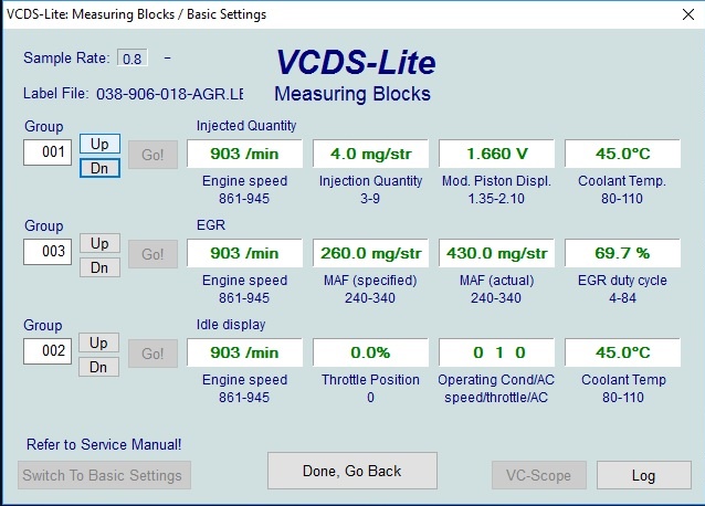 На празен ход е по принцип снимката, но на загрял мотор и ЕГР-а не е затапен.