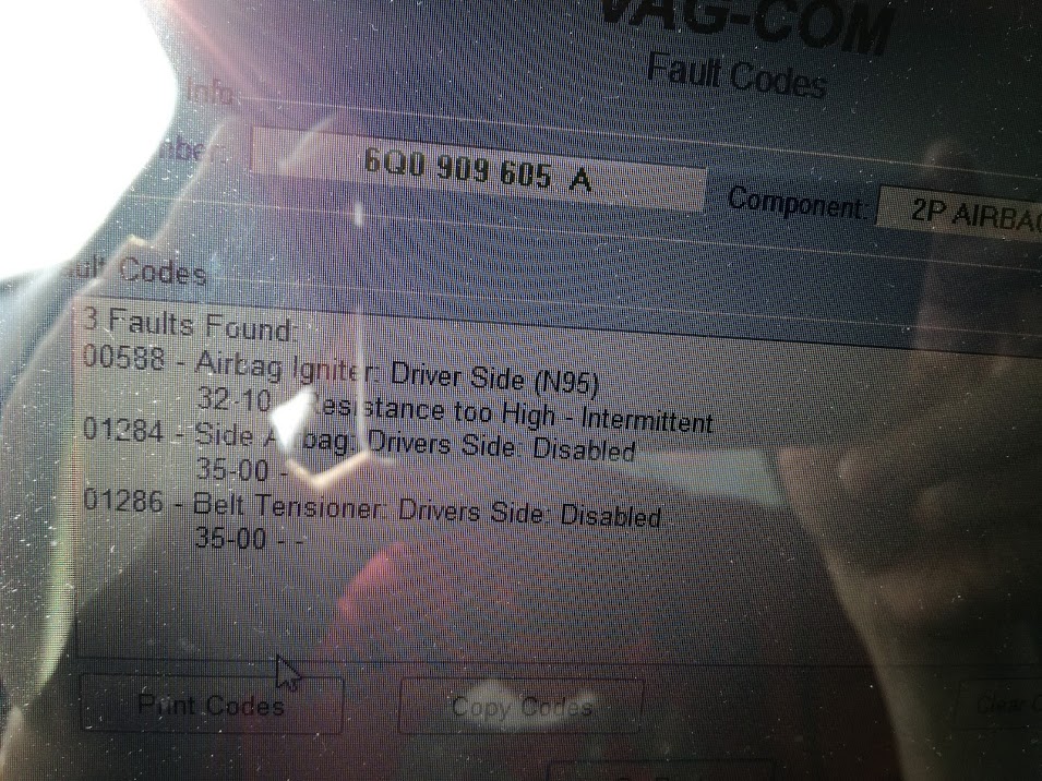 VW`VENTO написа:Колата е поло 6n2 1.4TDI.Лампата на airbag-a на таблото свети постоянно.При закачане на диагностика ми излязоха тези грешки,които съм снимал.Как мога да накарам лампата на таблото да изгасне?