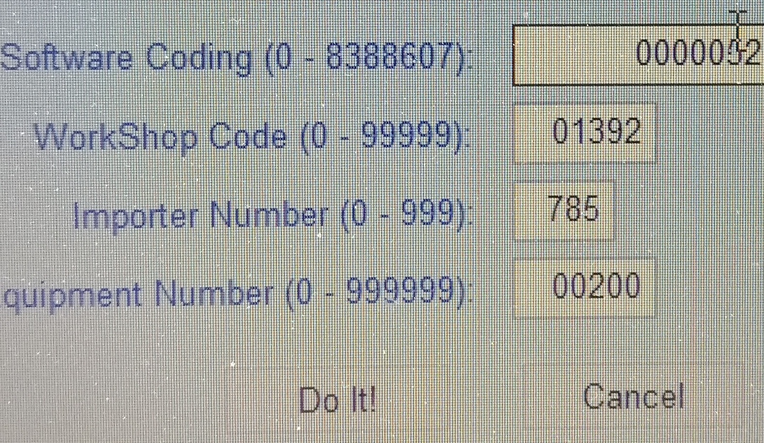 и на двете ли врати си писал числа по твой избор? Ако не си виж на другата какво е числото, когато му дадеш кодинг. Това число, което си е там го събираш с 0000256 и пишеш сбора от двете в полето.